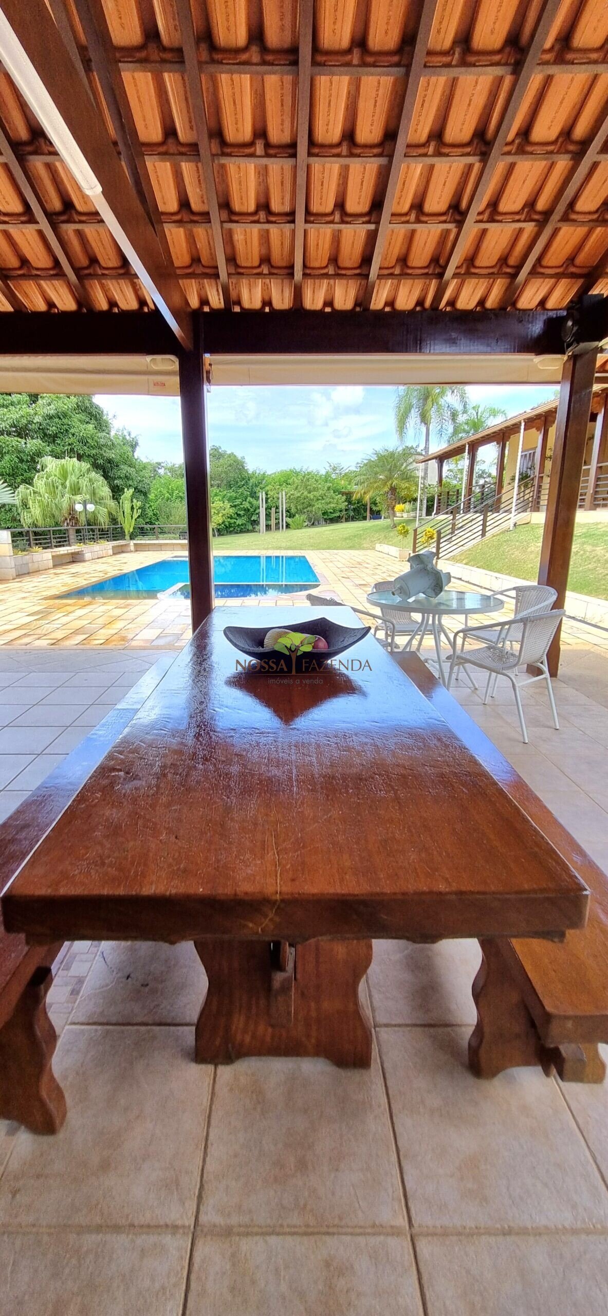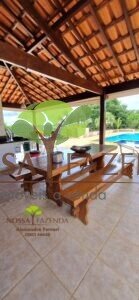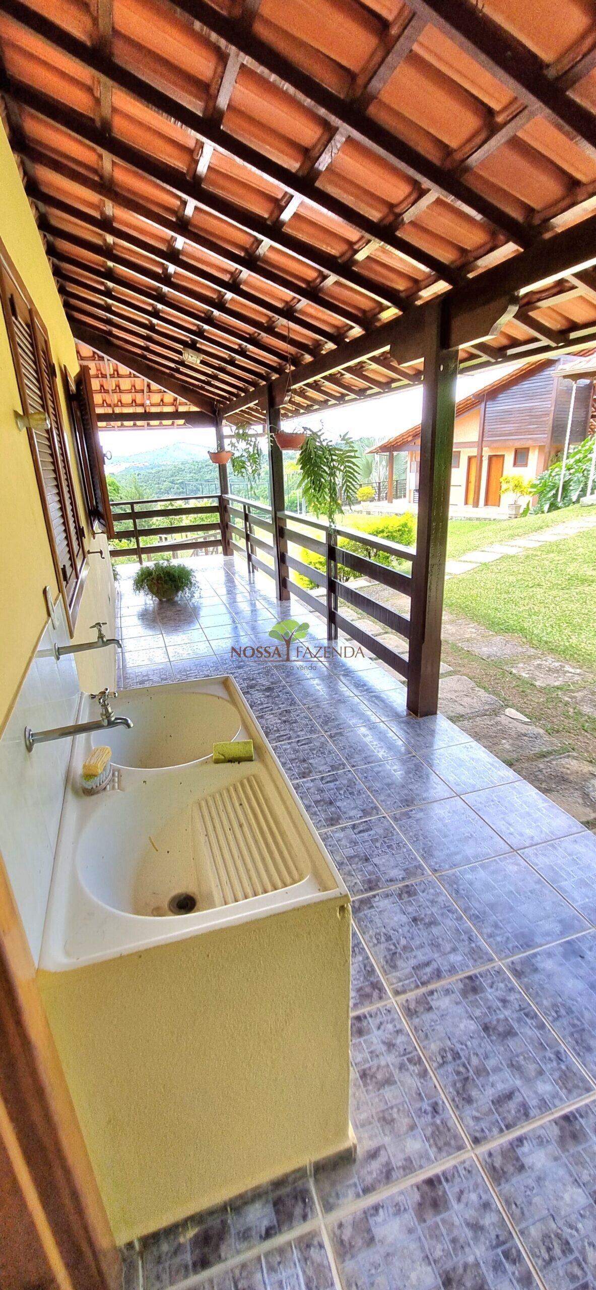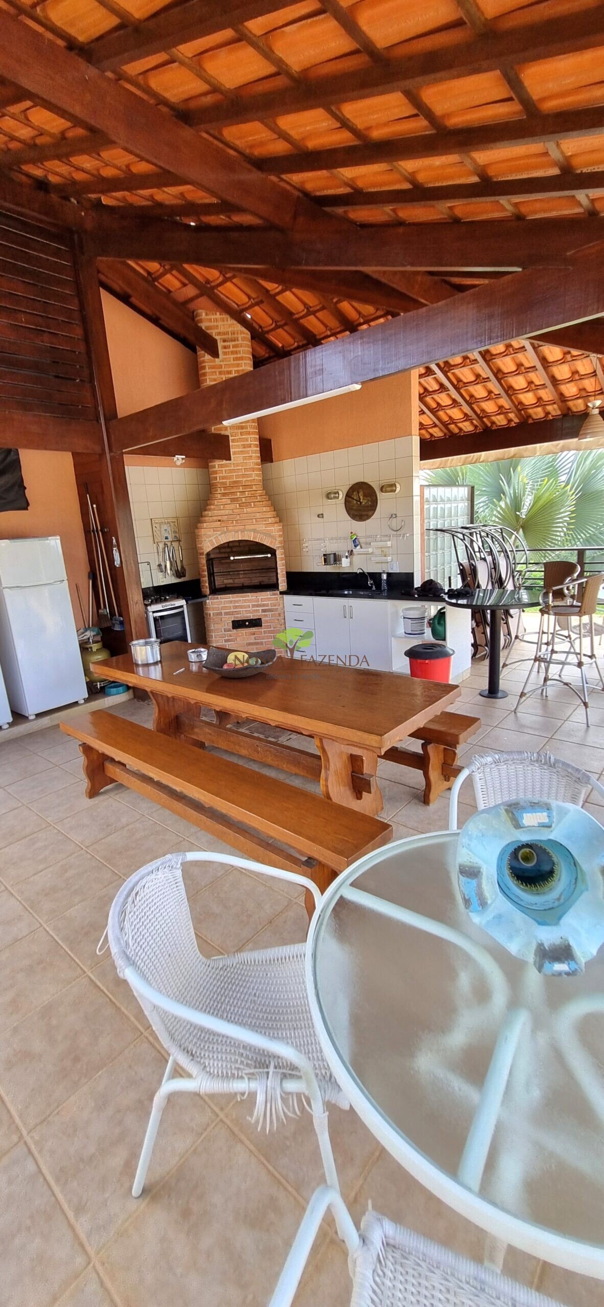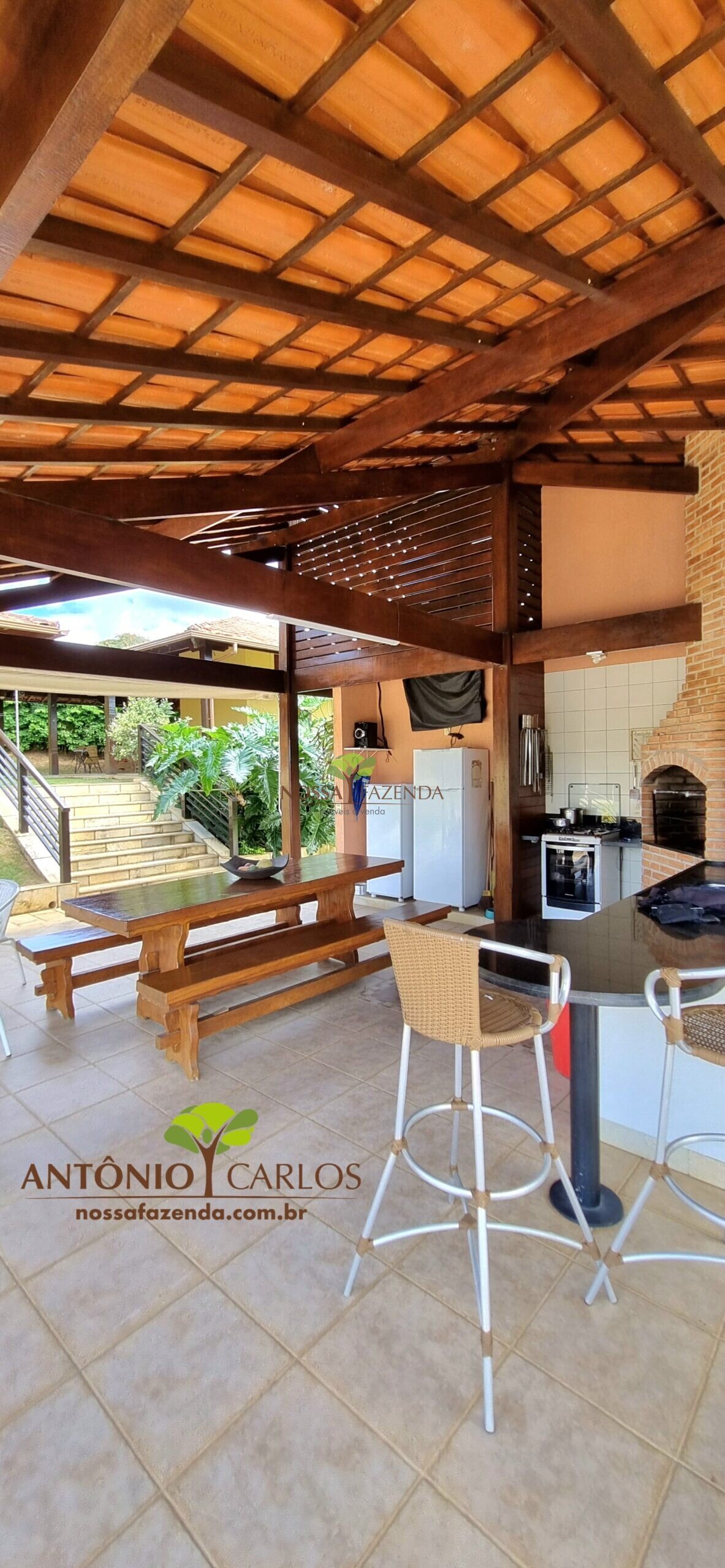 Tem ainda: horta estufa pra colher dali mesmo as coisa fresquinha e sem agrotóxico, pomar com muitas frutíferas em plena produção.