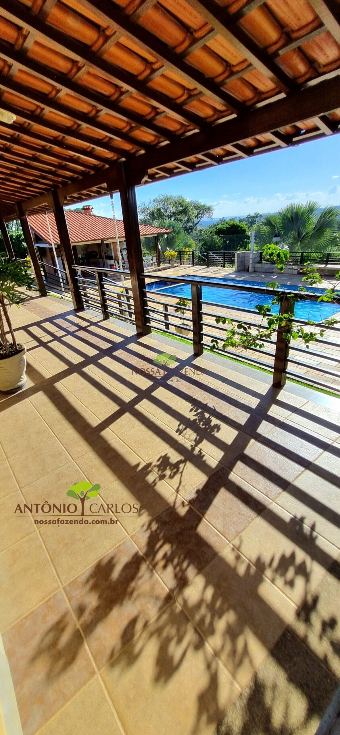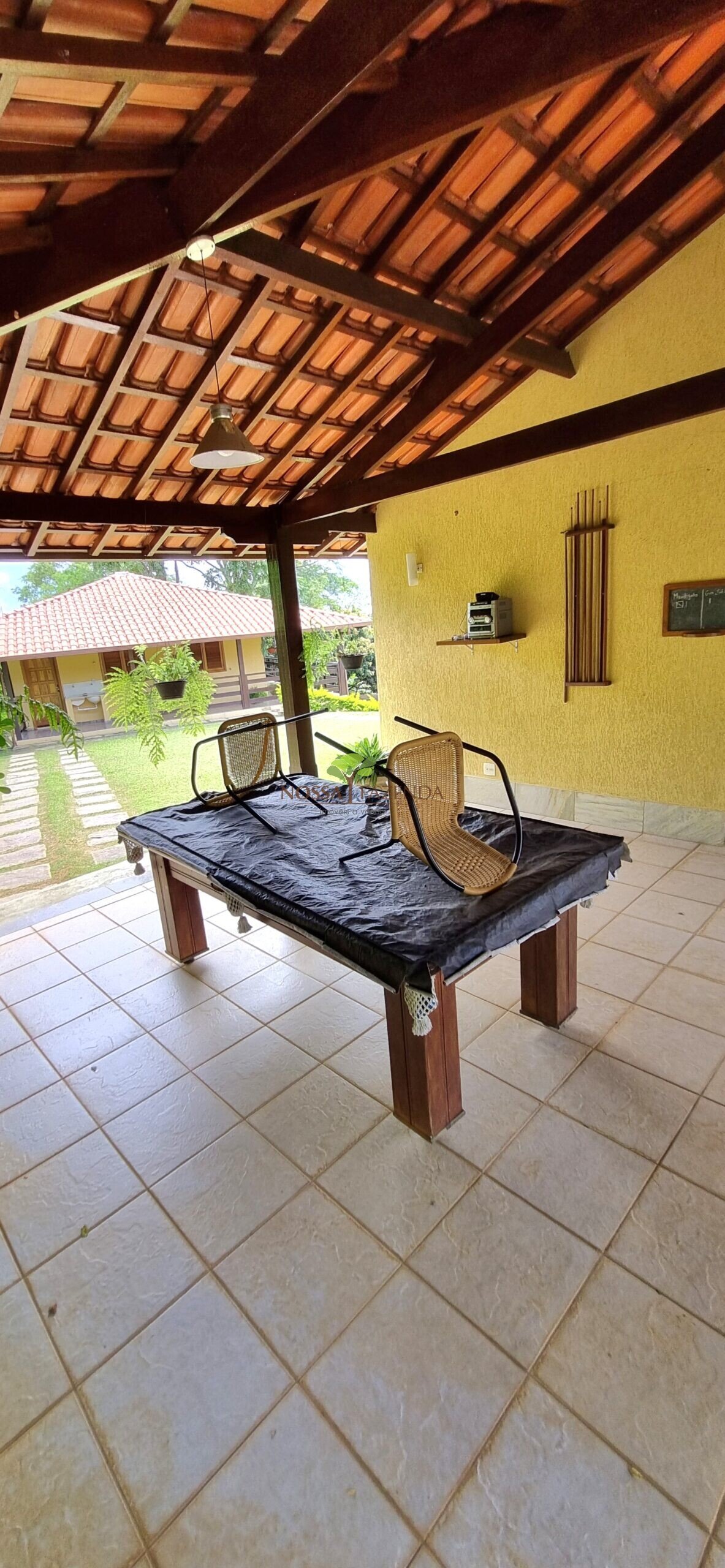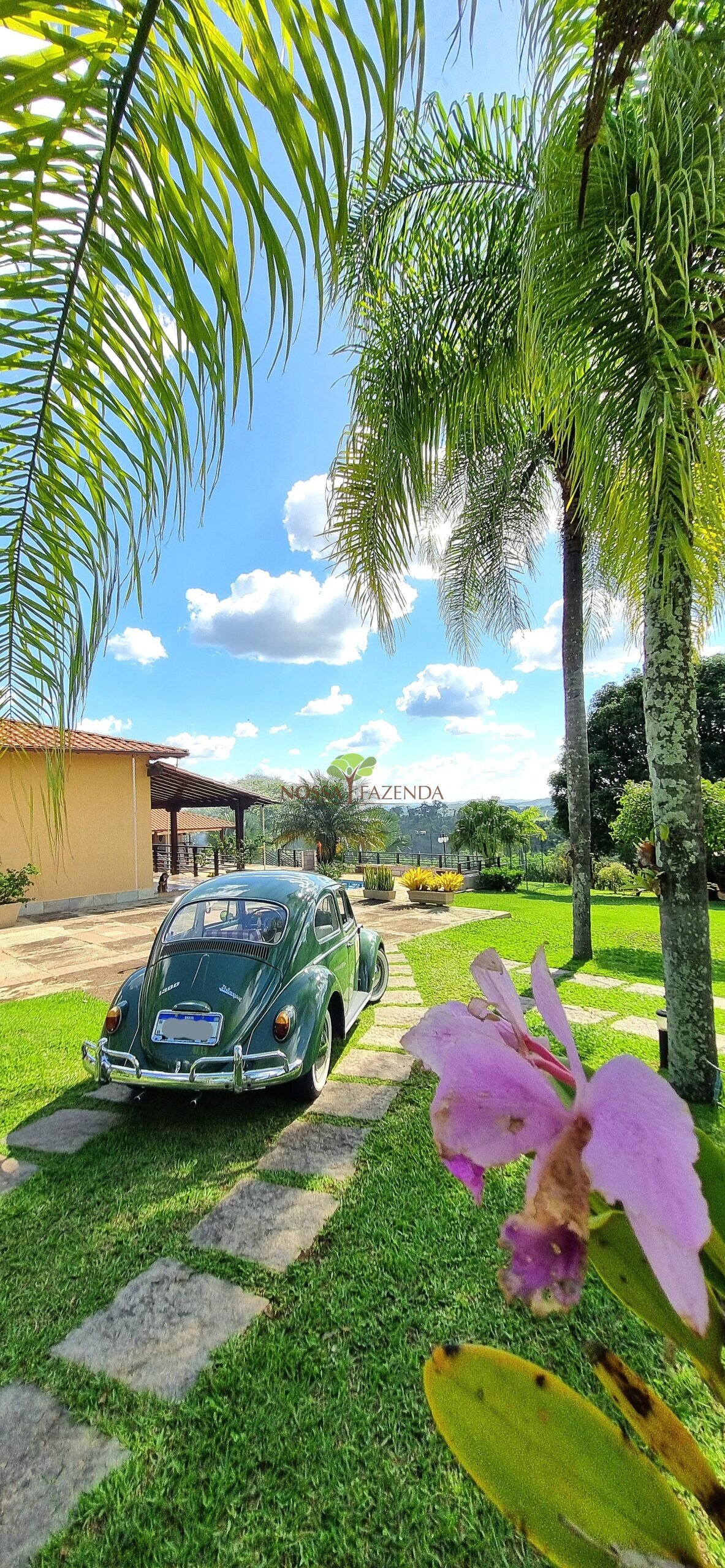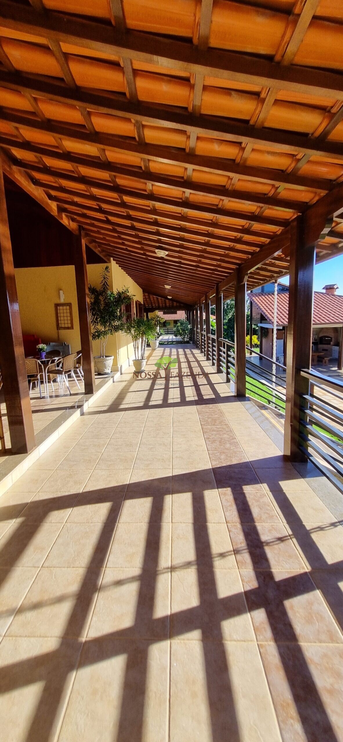Tem ainda: horta estufa pra colher dali mesmo as coisa fresquinha e sem agrotóxico, pomar com muitas frutíferas em plena produção.