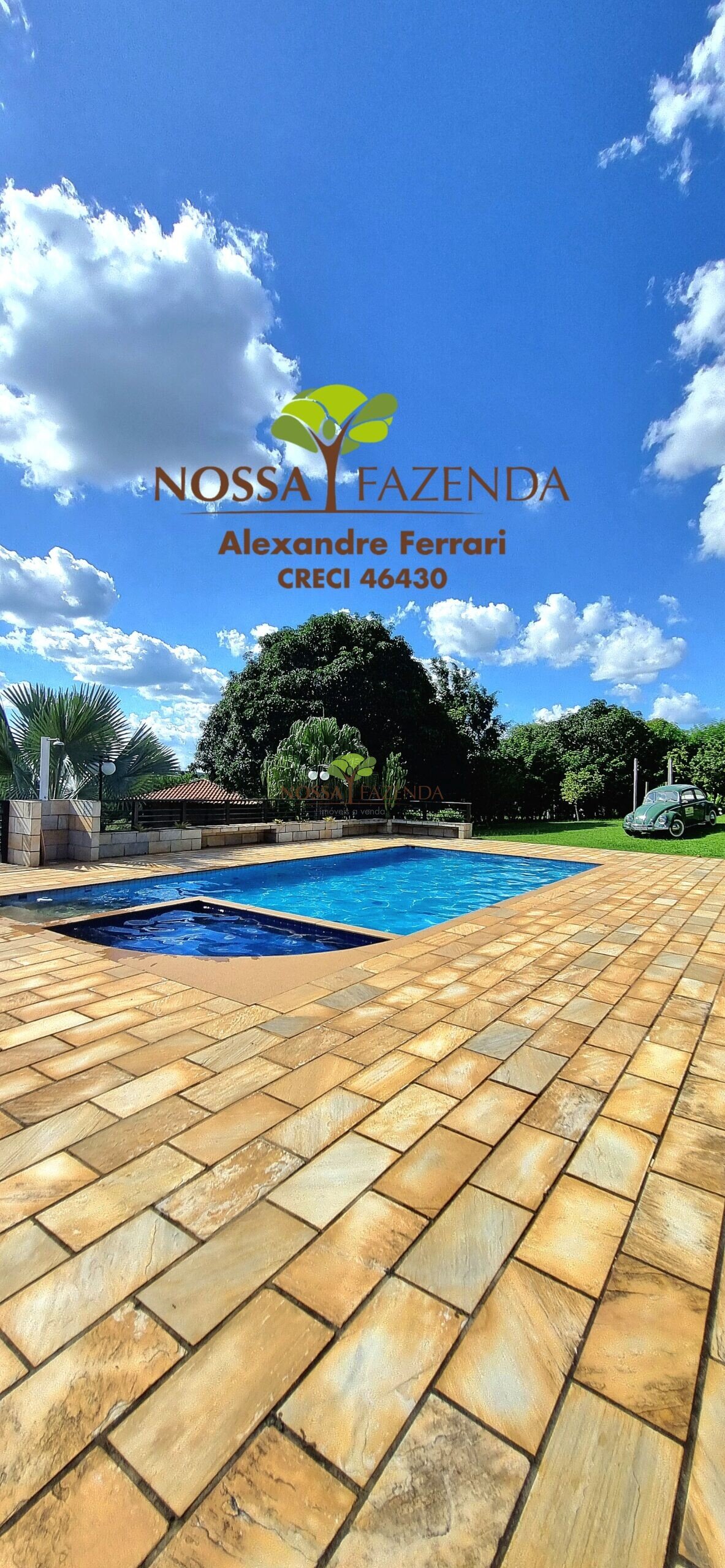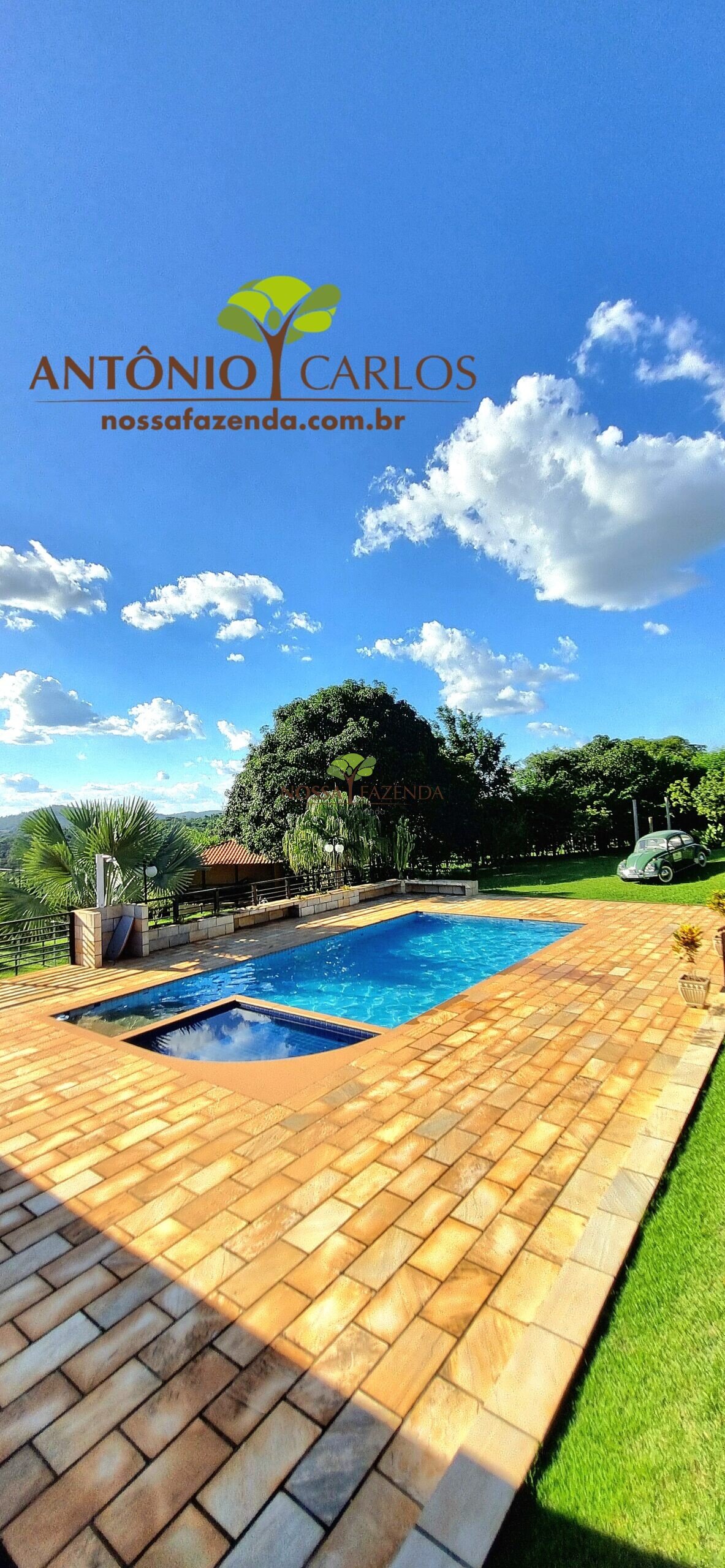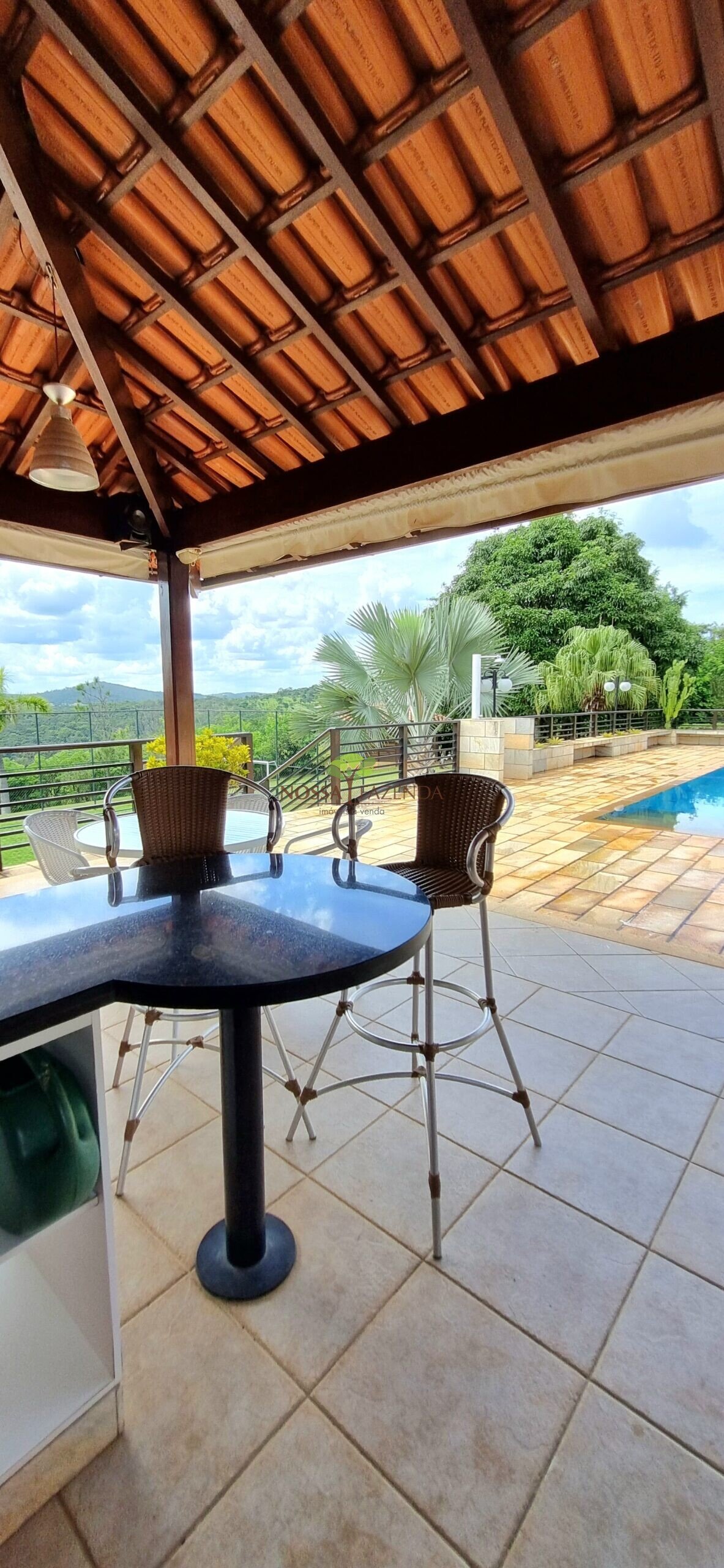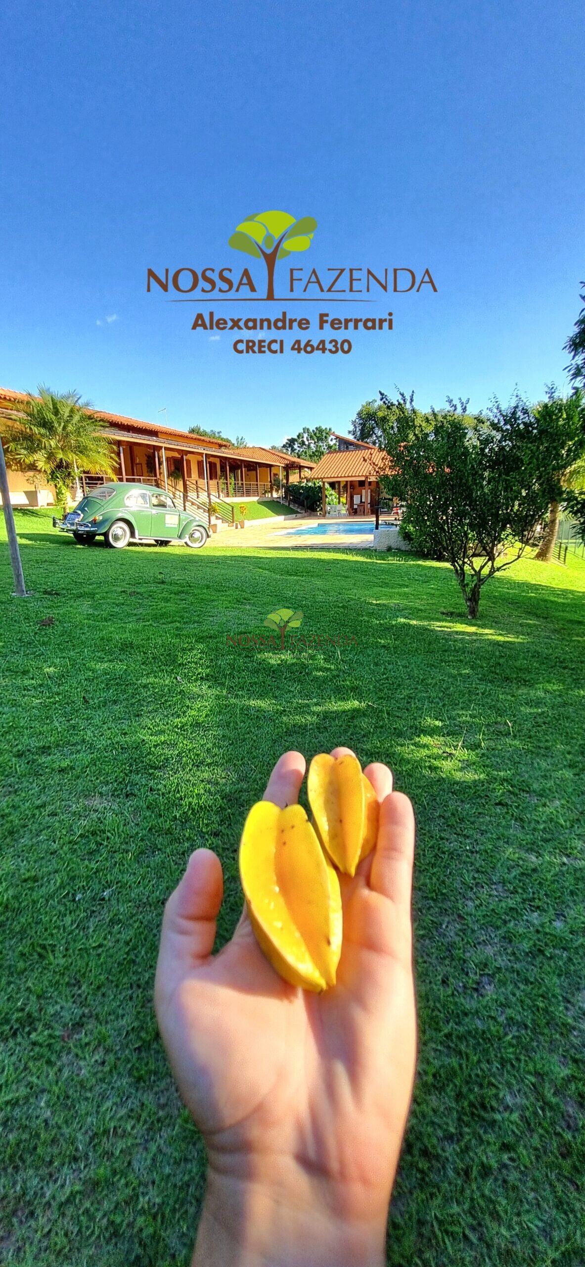 Tem ainda: horta estufa pra colher dali mesmo as coisa fresquinha e sem agrotóxico, pomar com muitas frutíferas em plena produção.