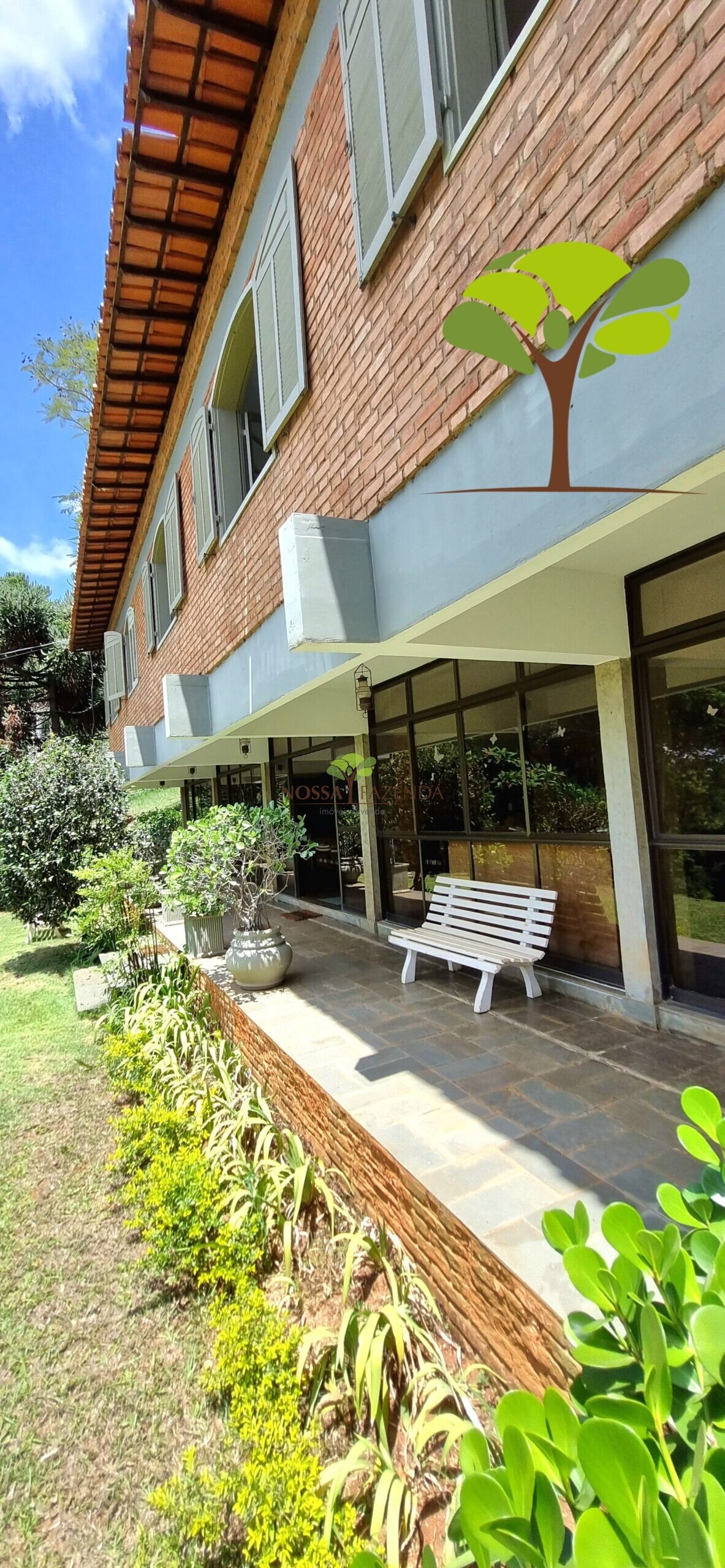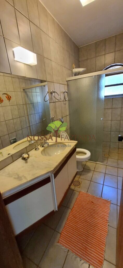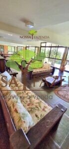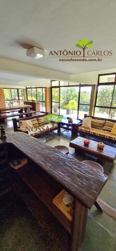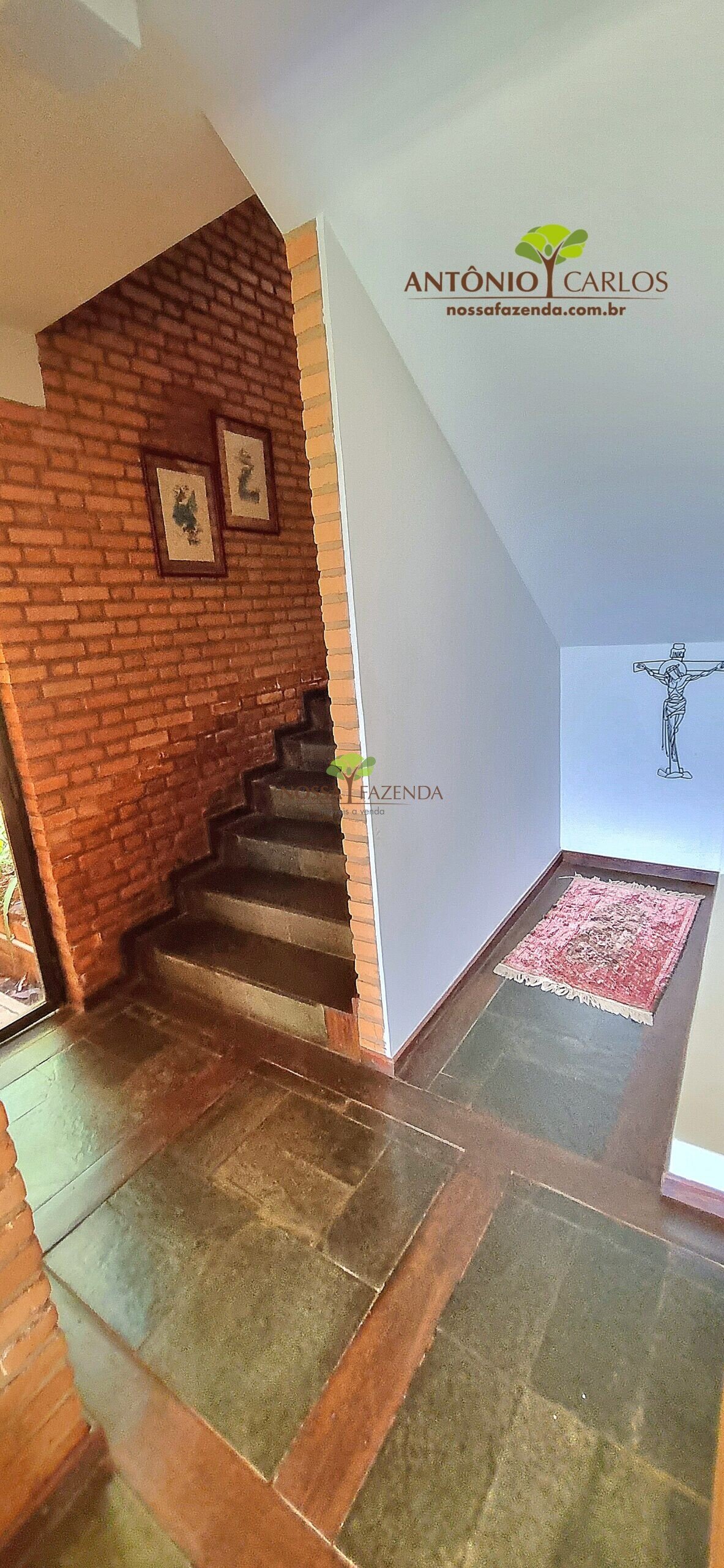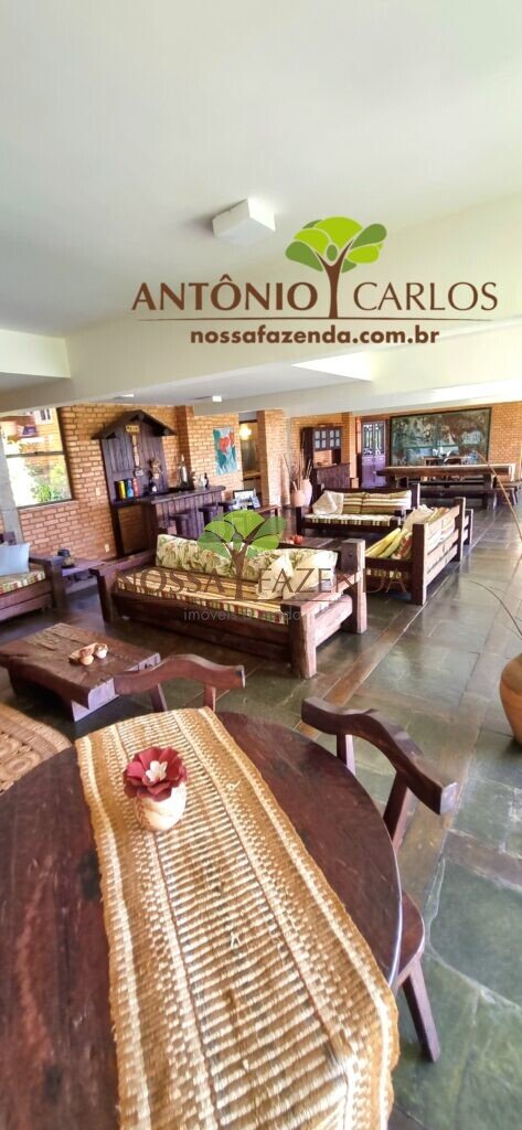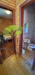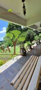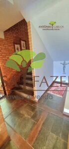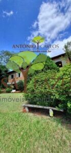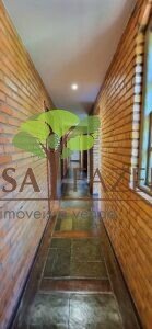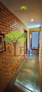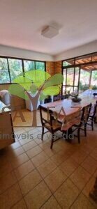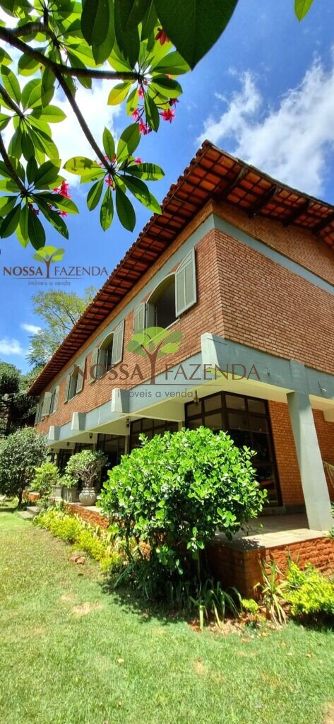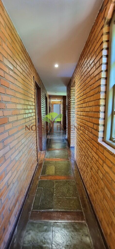 A casa em 2 pavimentos feita no tijolinho lembra estilo medival, possui uma linda vista de quase todos os cômodos. Em baixo temos um amplo salão 3 ambientes decorados com móveis de madeira de demolição; no 2º pavimento temos 5 confortáveis suítes com armários e, como disse antes, todas elas uma linda vista da janela; dá até pra avistar a lagoa principal do condomínio!