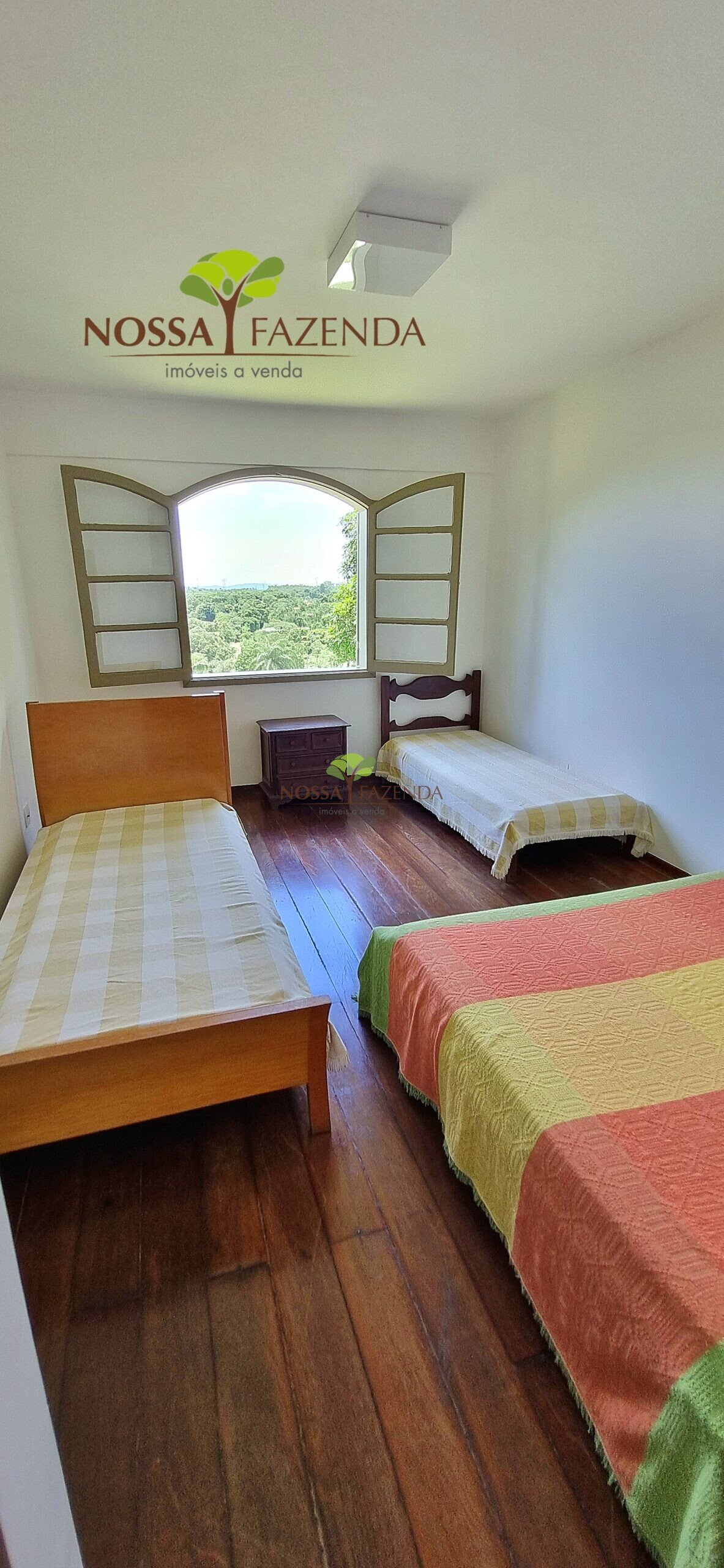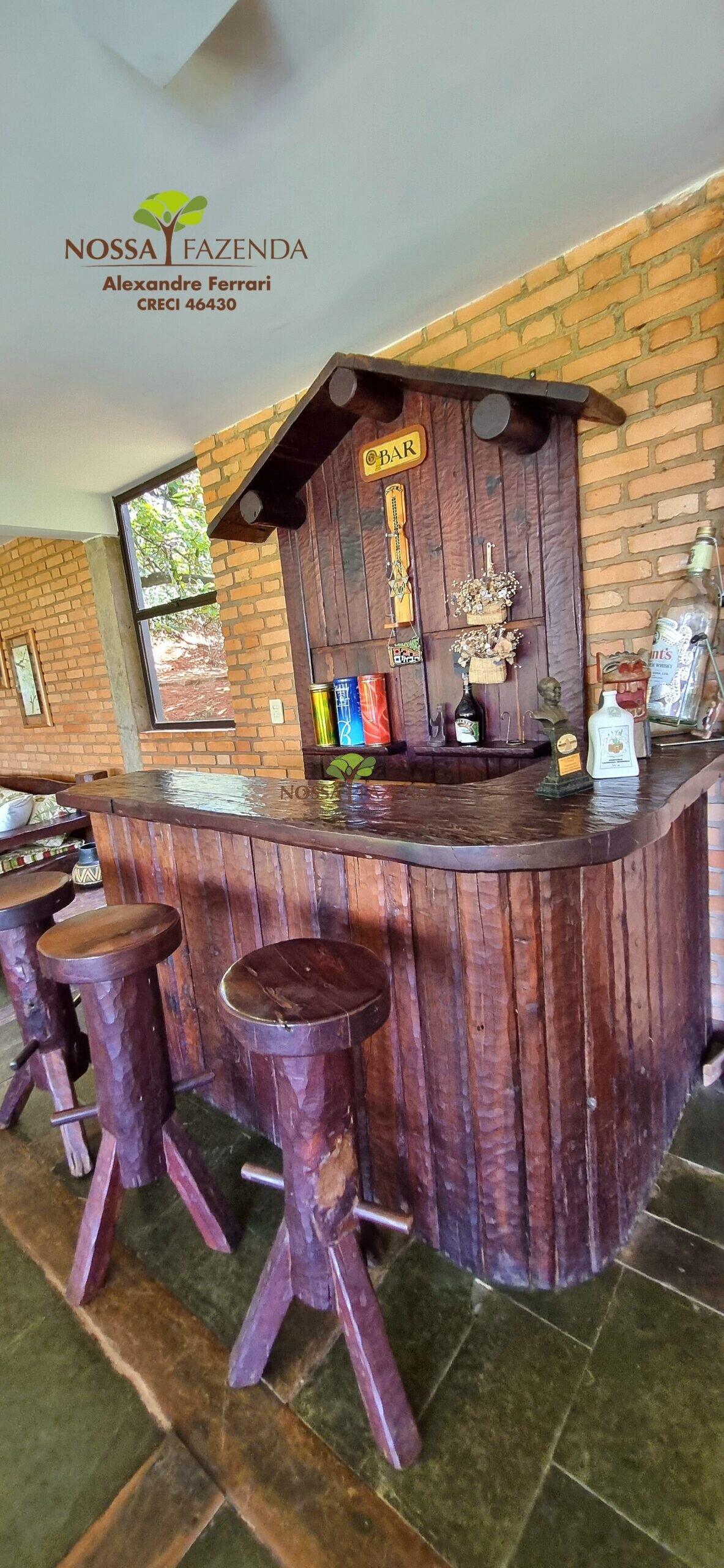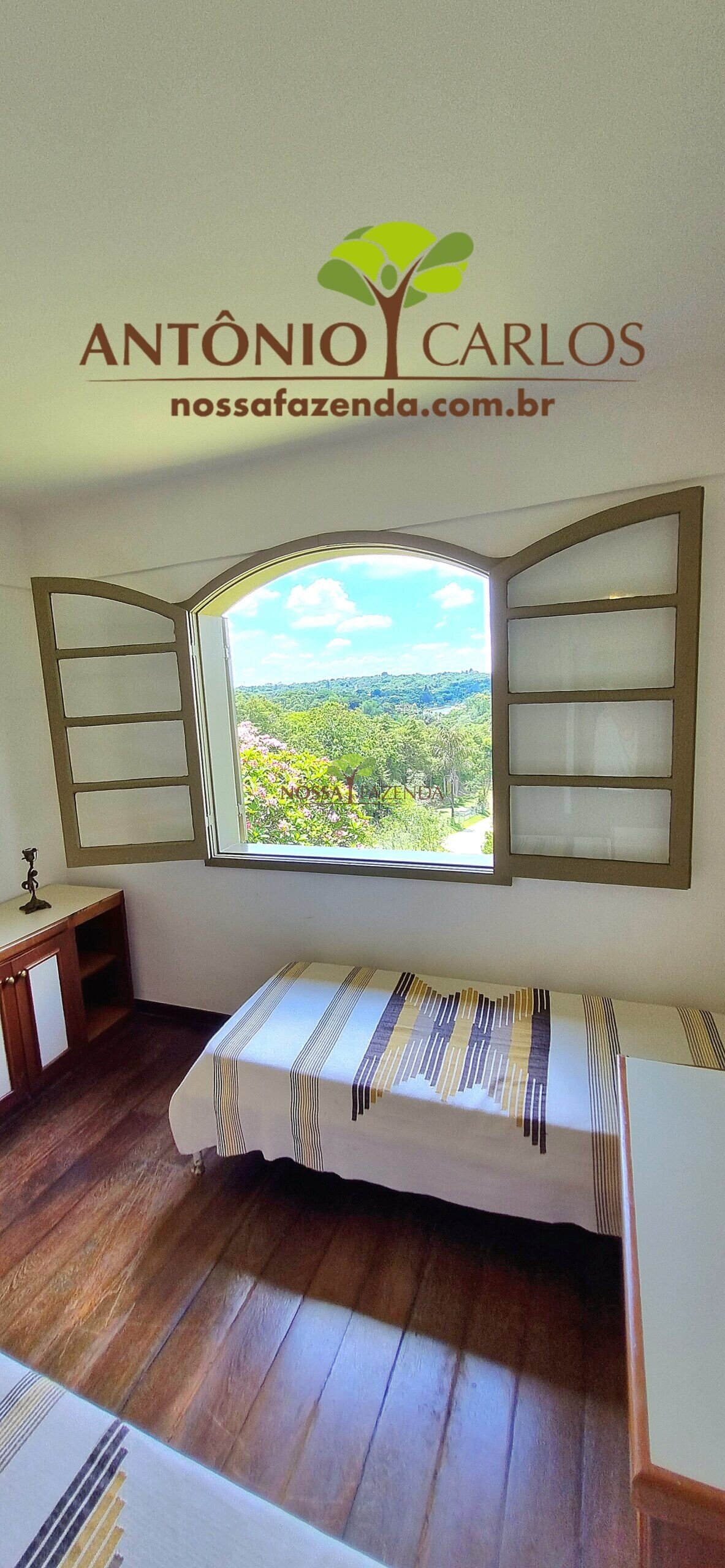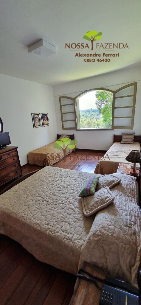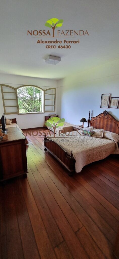 A casa em 2 pavimentos feita no tijolinho lembra estilo medival, possui uma linda vista de quase todos os cômodos. Em baixo temos um amplo salão 3 ambientes decorados com móveis de madeira de demolição; no 2º pavimento temos 5 confortáveis suítes com armários e, como disse antes, todas elas uma linda vista da janela; dá até pra avistar a lagoa principal do condomínio!