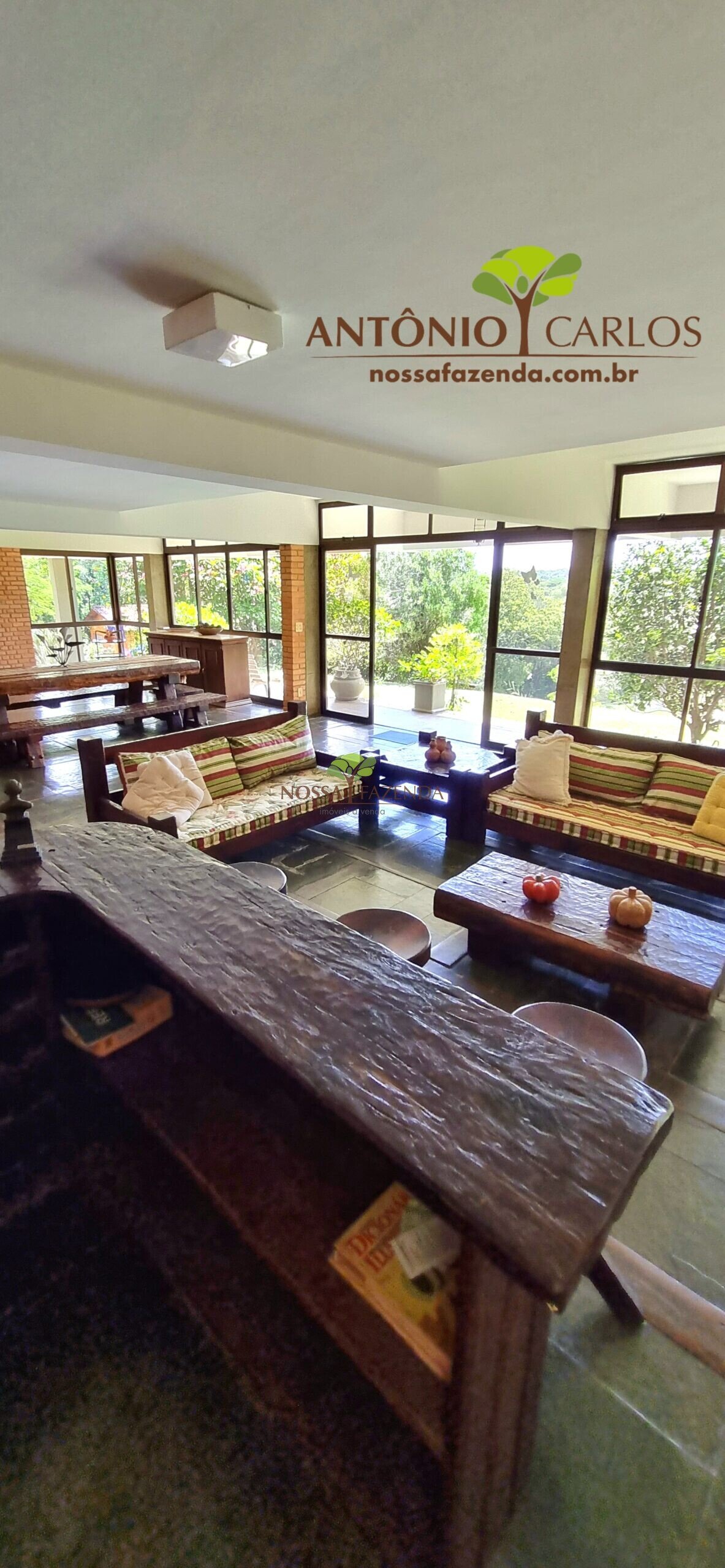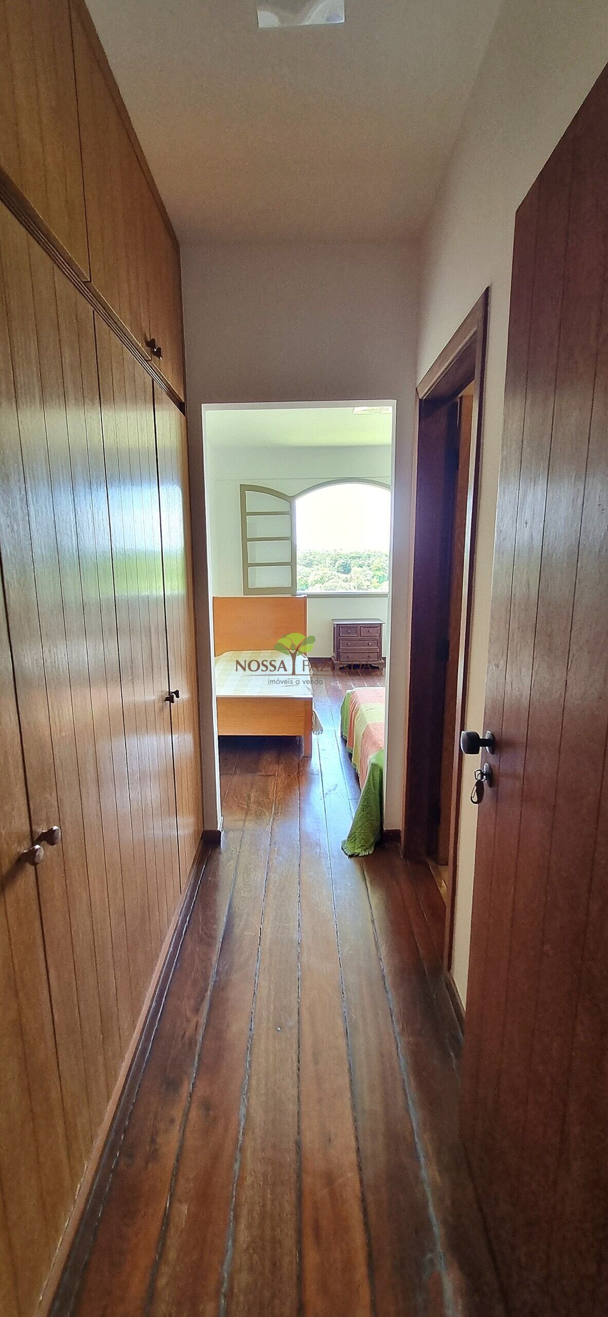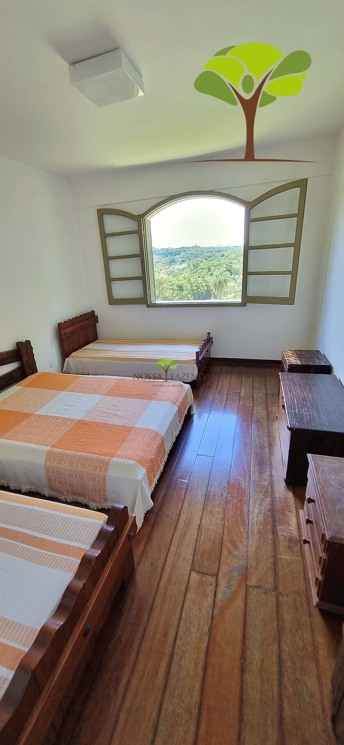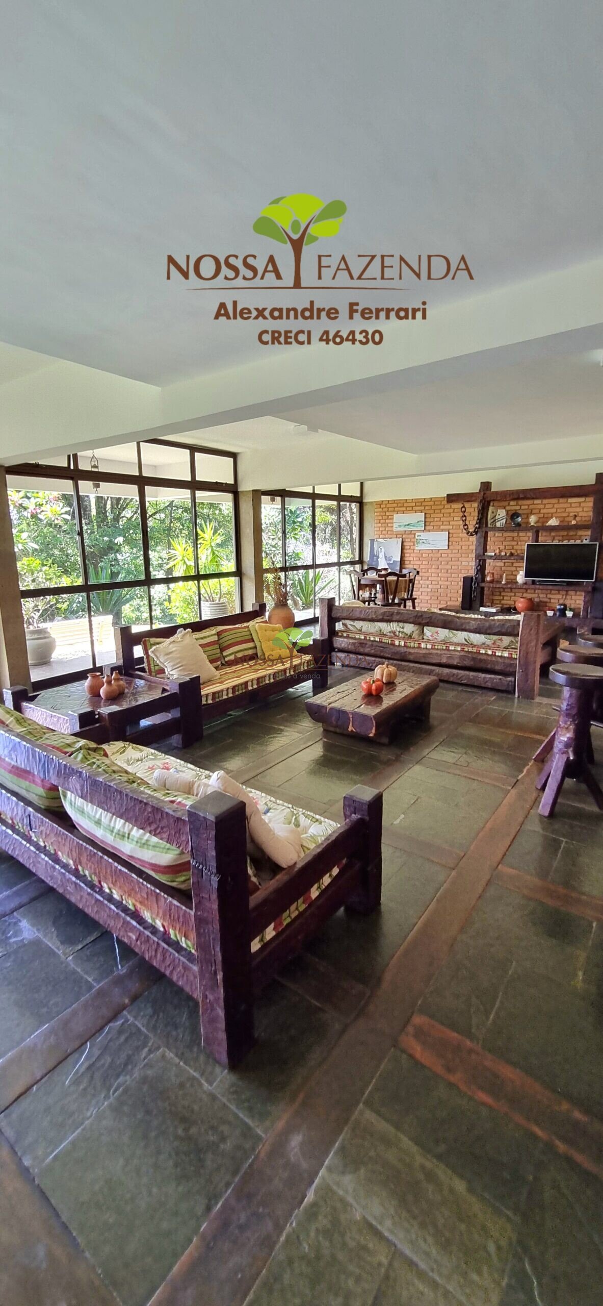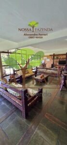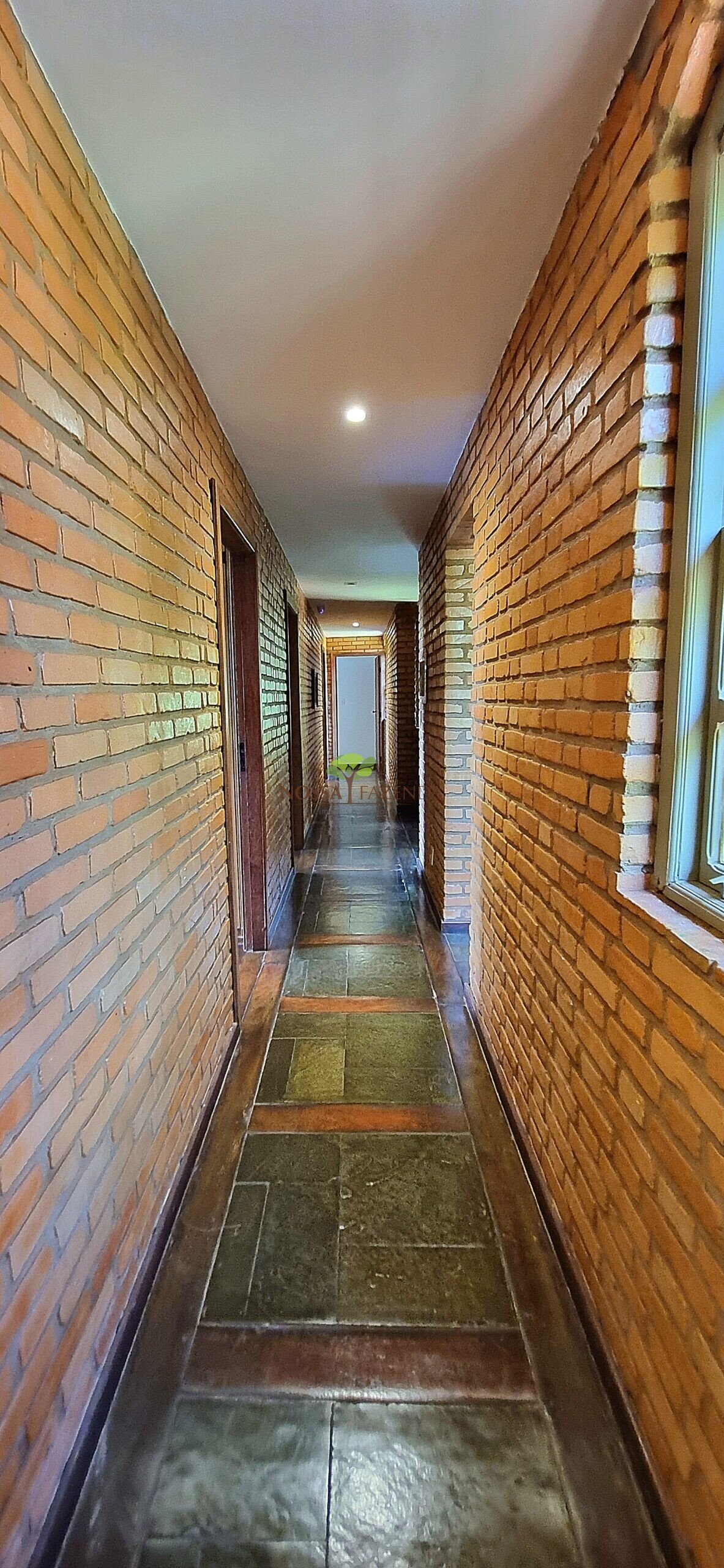 A casa em 2 pavimentos feita no tijolinho lembra estilo medival, possui uma linda vista de quase todos os cômodos. Em baixo temos um amplo salão 3 ambientes decorados com móveis de madeira de demolição; no 2º pavimento temos 5 confortáveis suítes com armários e, como disse antes, todas elas uma linda vista da janela; dá até pra avistar a lagoa principal do condomínio!