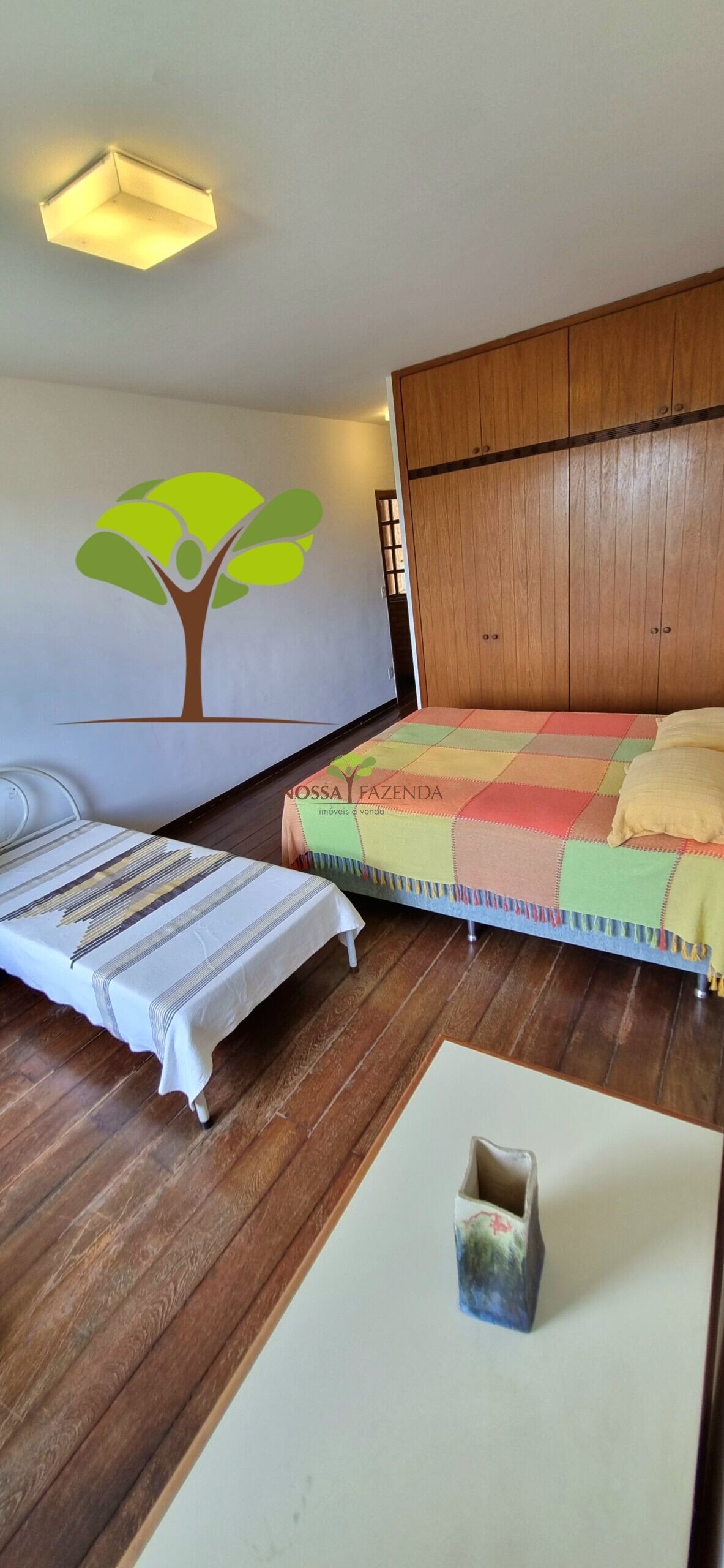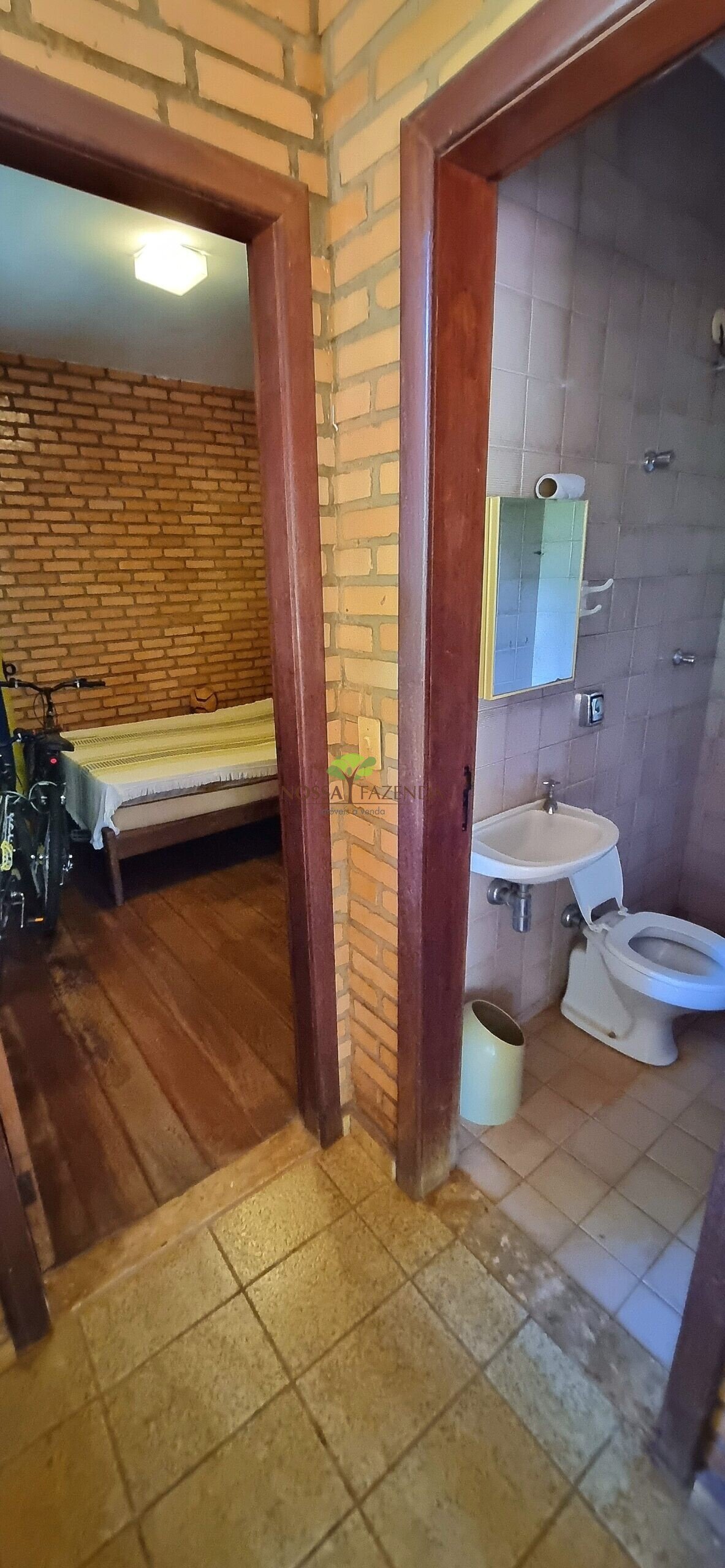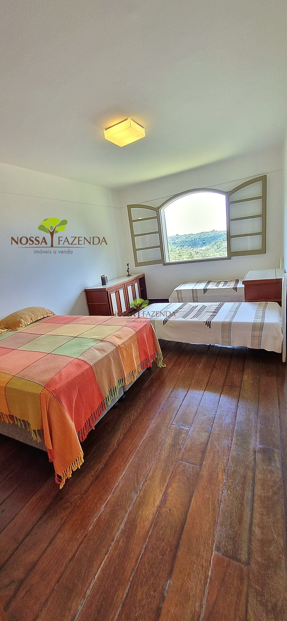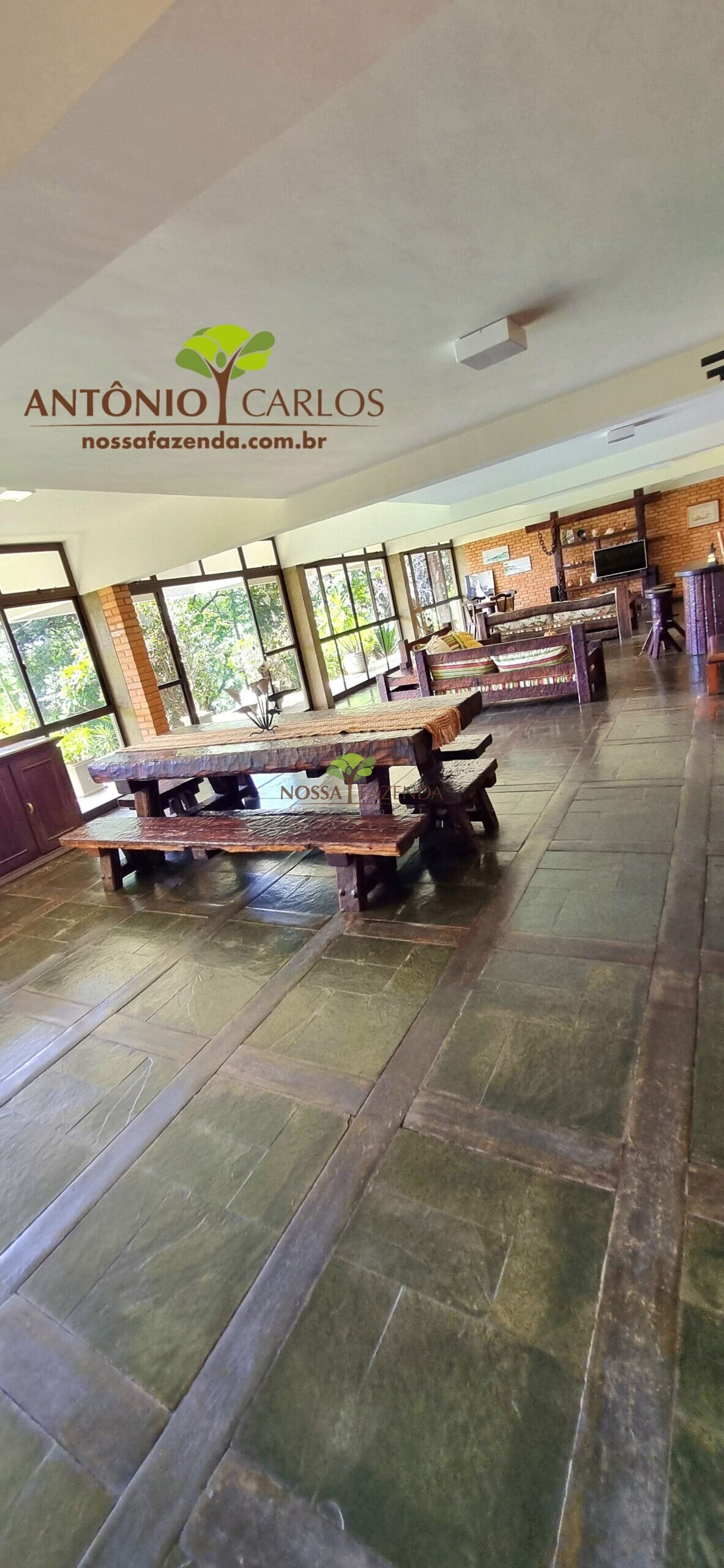 A casa em 2 pavimentos feita no tijolinho lembra estilo medival, possui uma linda vista de quase todos os cômodos. Em baixo temos um amplo salão 3 ambientes decorados com móveis de madeira de demolição; no 2º pavimento temos 5 confortáveis suítes com armários e, como disse antes, todas elas uma linda vista da janela; dá até pra avistar a lagoa principal do condomínio!