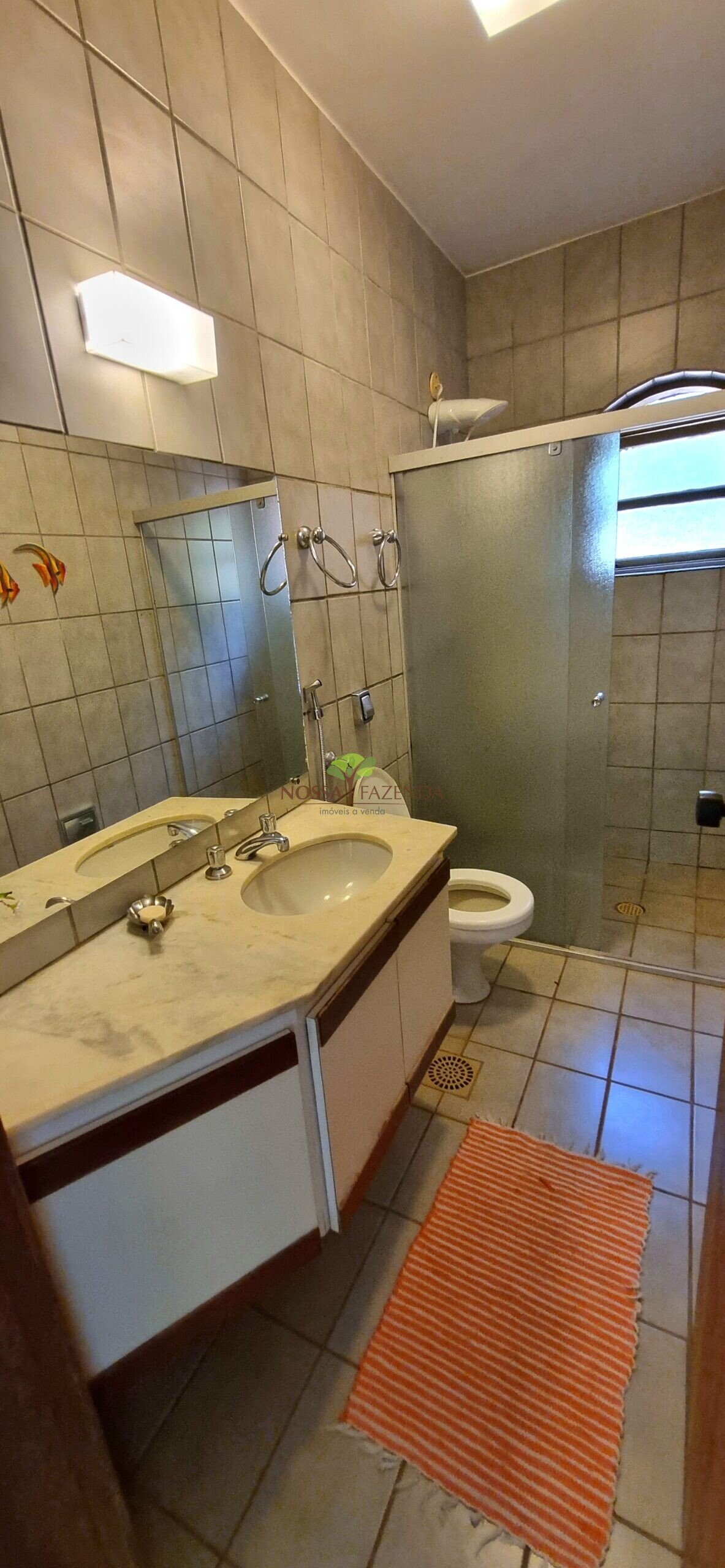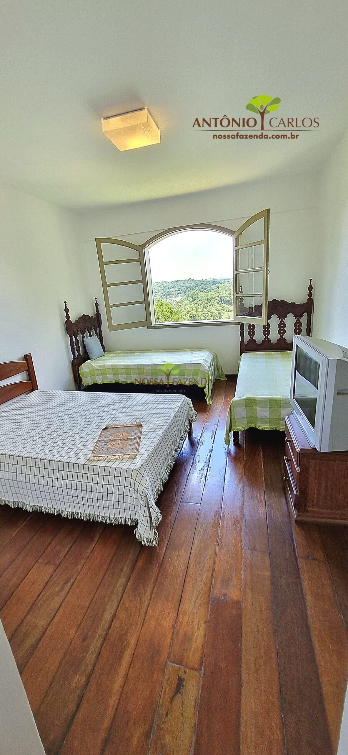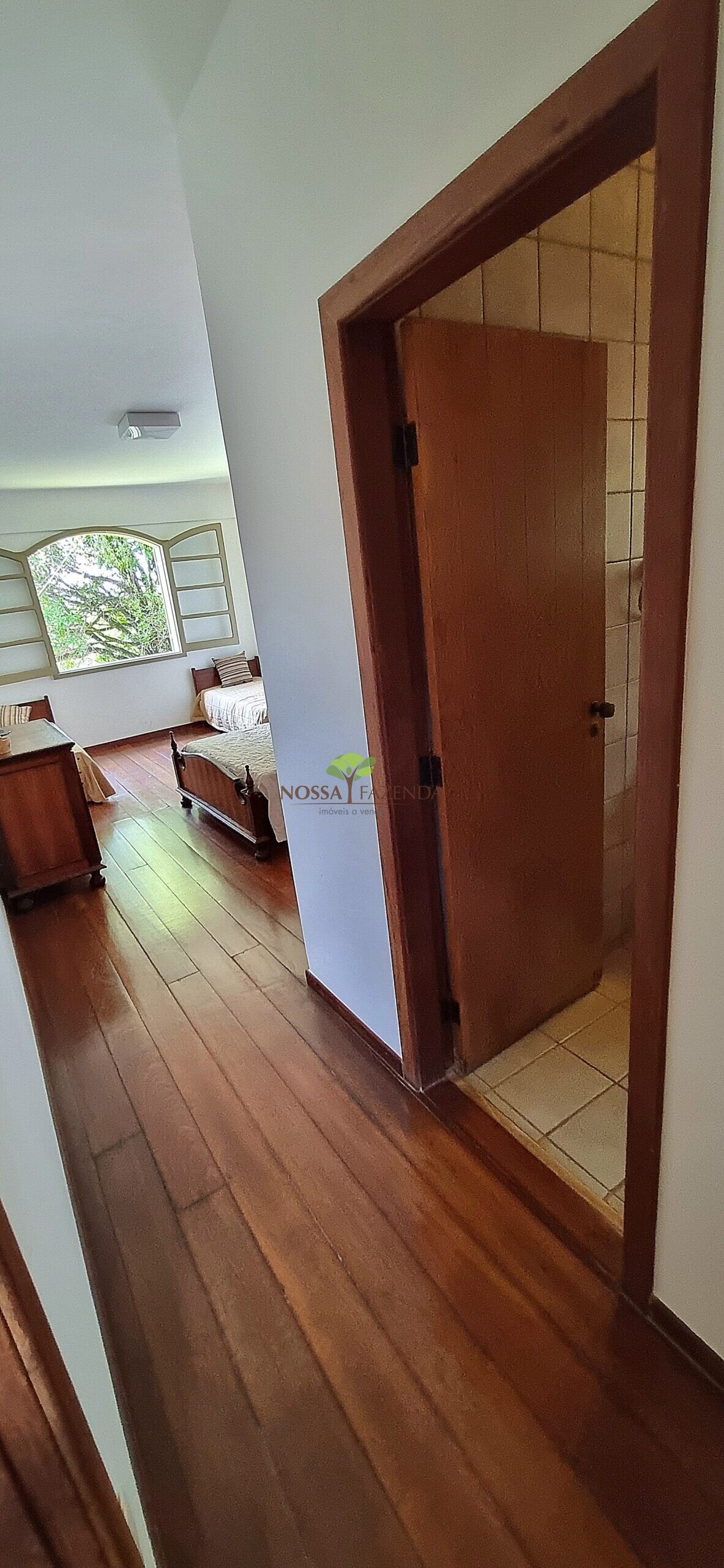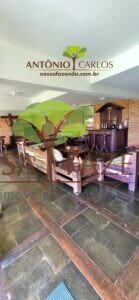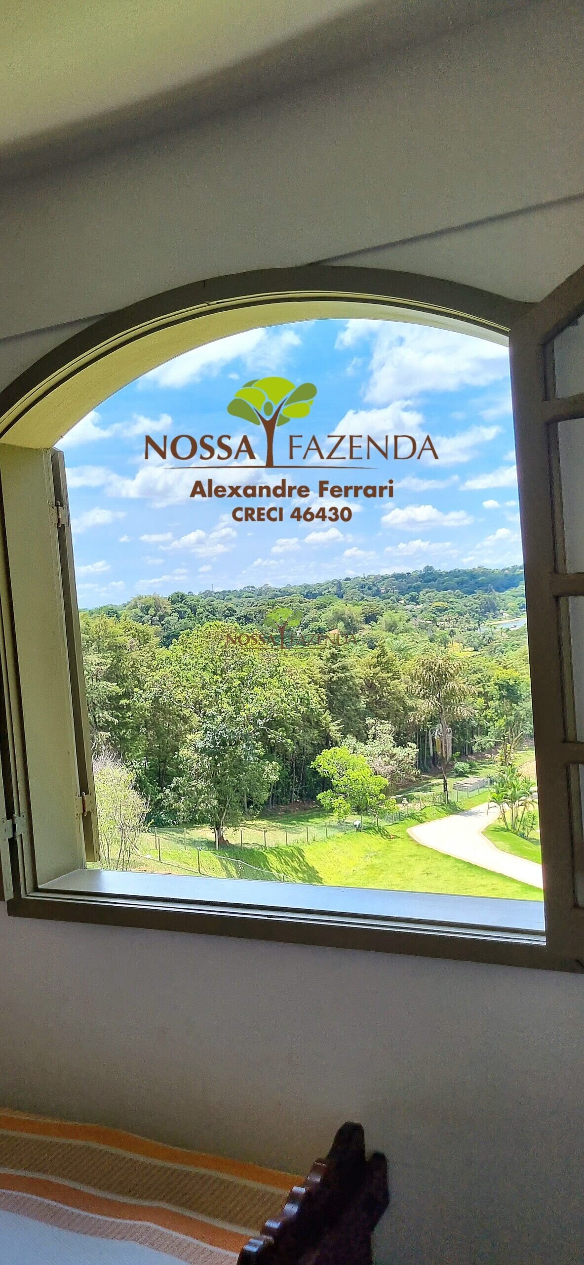 A casa em 2 pavimentos feita no tijolinho lembra estilo medival, possui uma linda vista de quase todos os cômodos. Em baixo temos um amplo salão 3 ambientes decorados com móveis de madeira de demolição; no 2º pavimento temos 5 confortáveis suítes com armários e, como disse antes, todas elas uma linda vista da janela; dá até pra avistar a lagoa principal do condomínio!