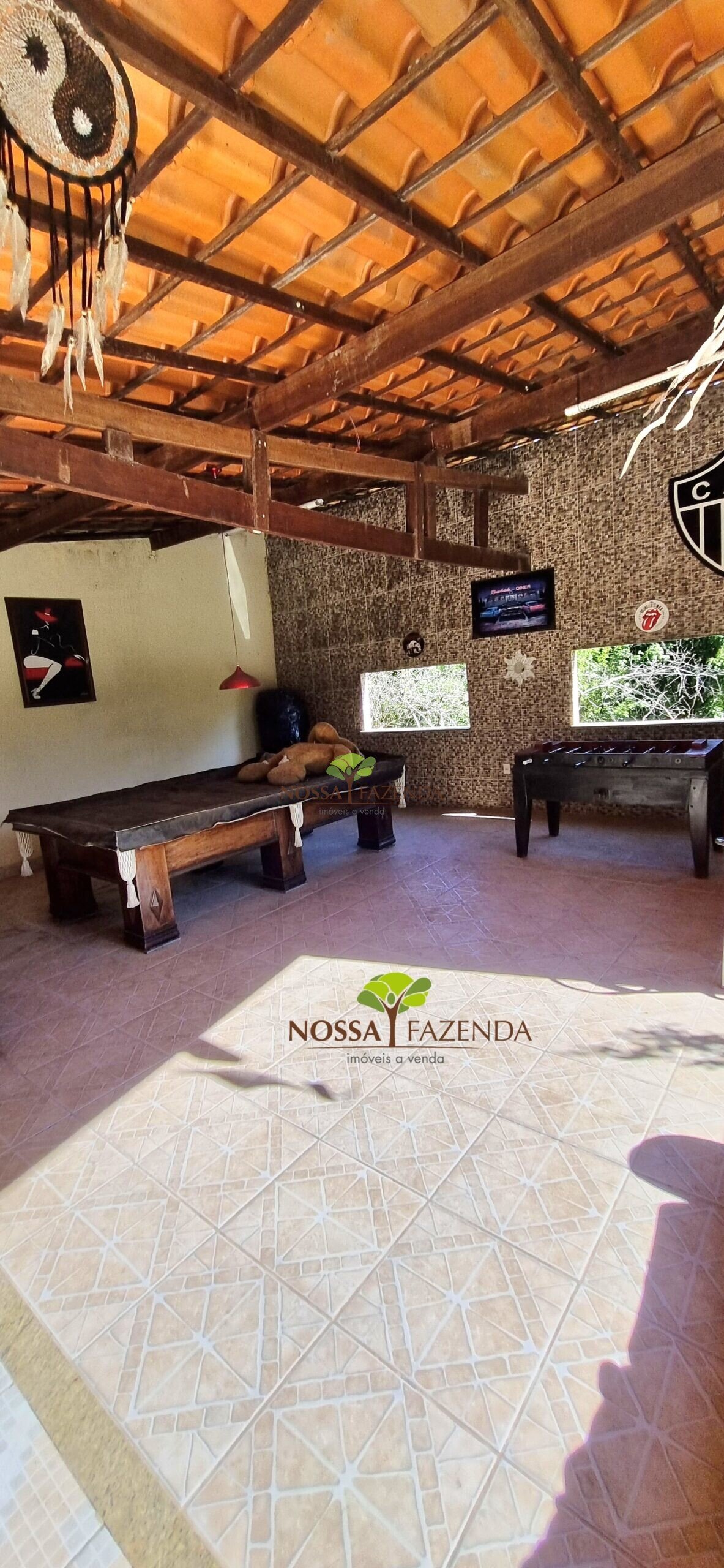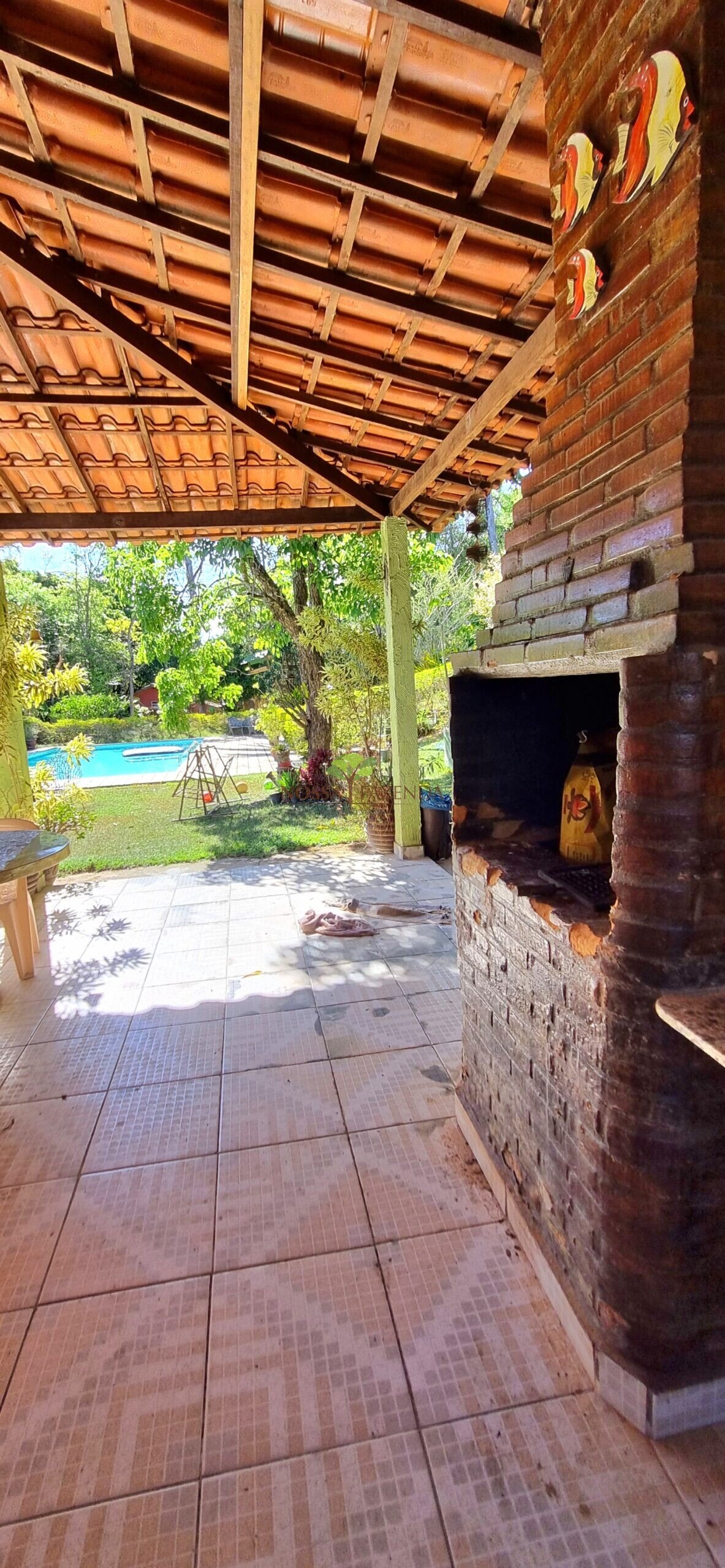 Grande piscina em alvenaria, área gourmet com fogão à lenha, churrasqueira e jogos ( sinuca e totó), lago com peixes, pomar formado e produzindo, bananal, amplo quintal e espaço útil muito aproveitável. Ao fundo pequeno córrego passando em um local muito privativo.