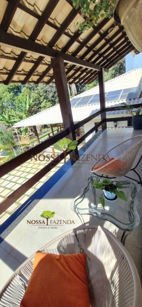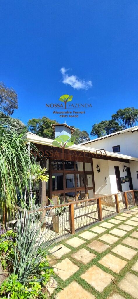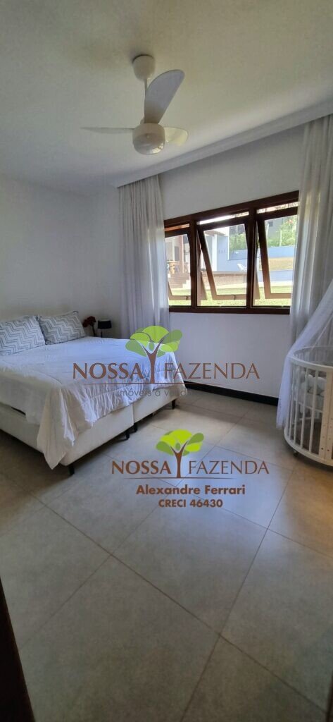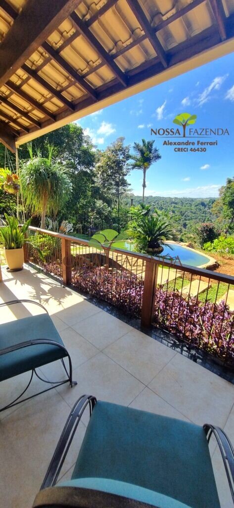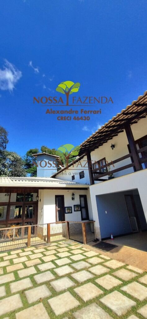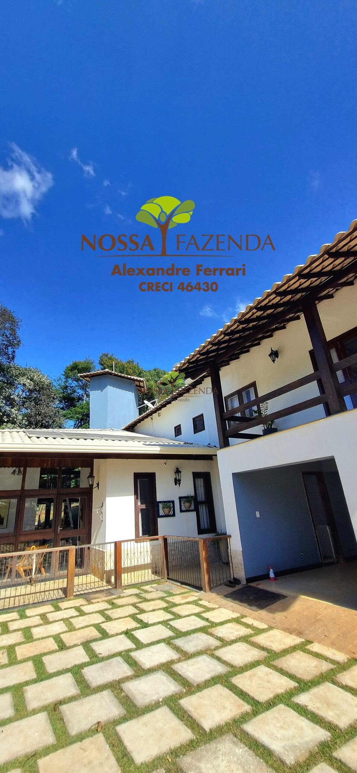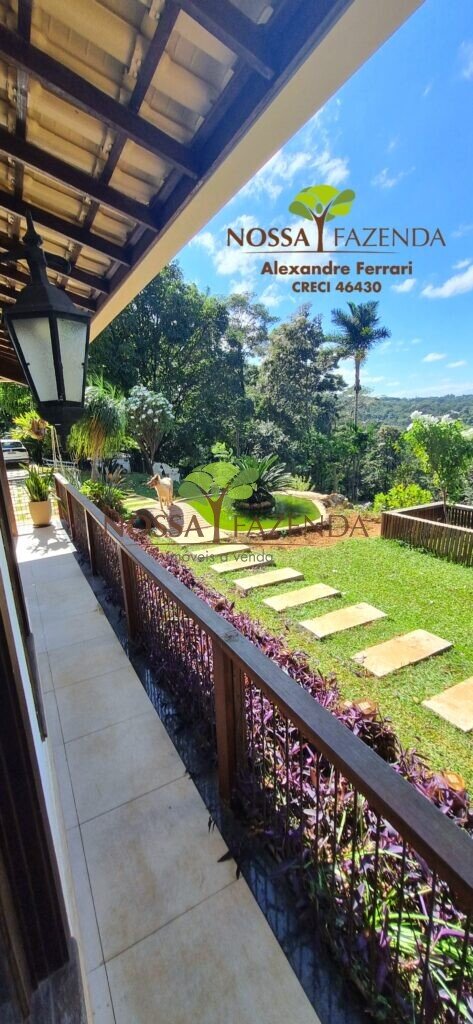 O terreno aqui tem 5.000m2 com uma vista incrível! Casa 2 pavimentos em ótimos padrões de acabamento e decoração; possui 5 quartos (sendo 4 suítes, uma delas com varanda privativa e closet); sala de estar com pé direito duplo, salar de jantar, cozinha estilo americana, ampla área de serviço com DCE, garagem coberta para 2 veículos.