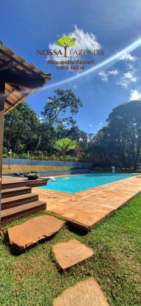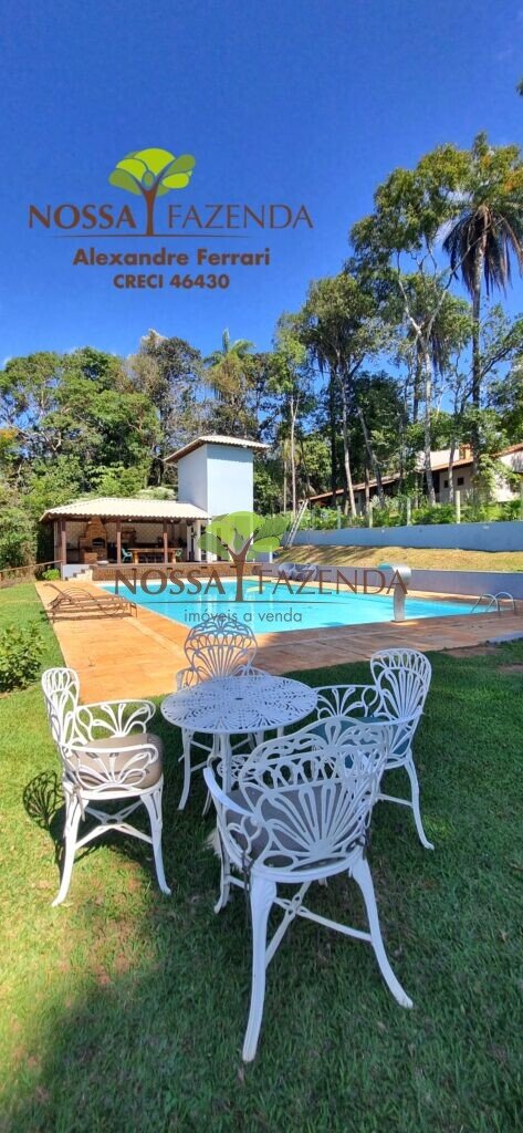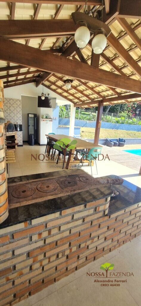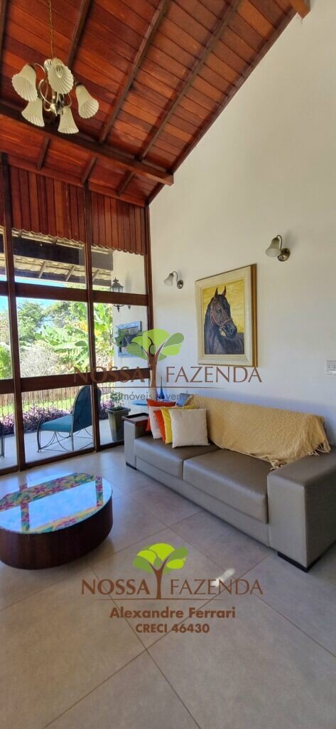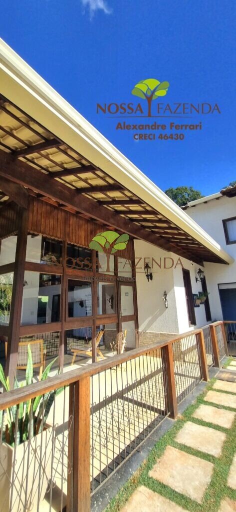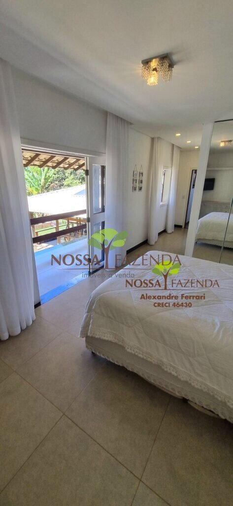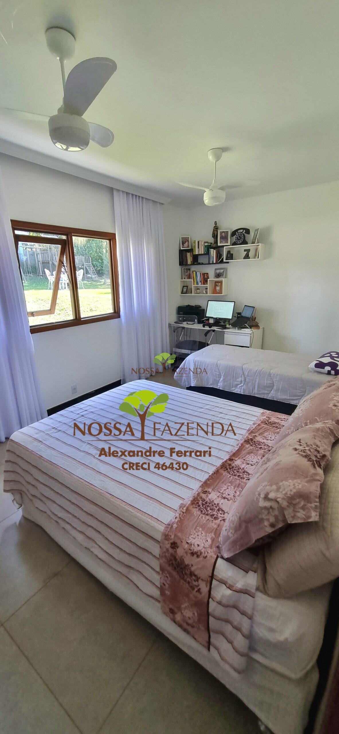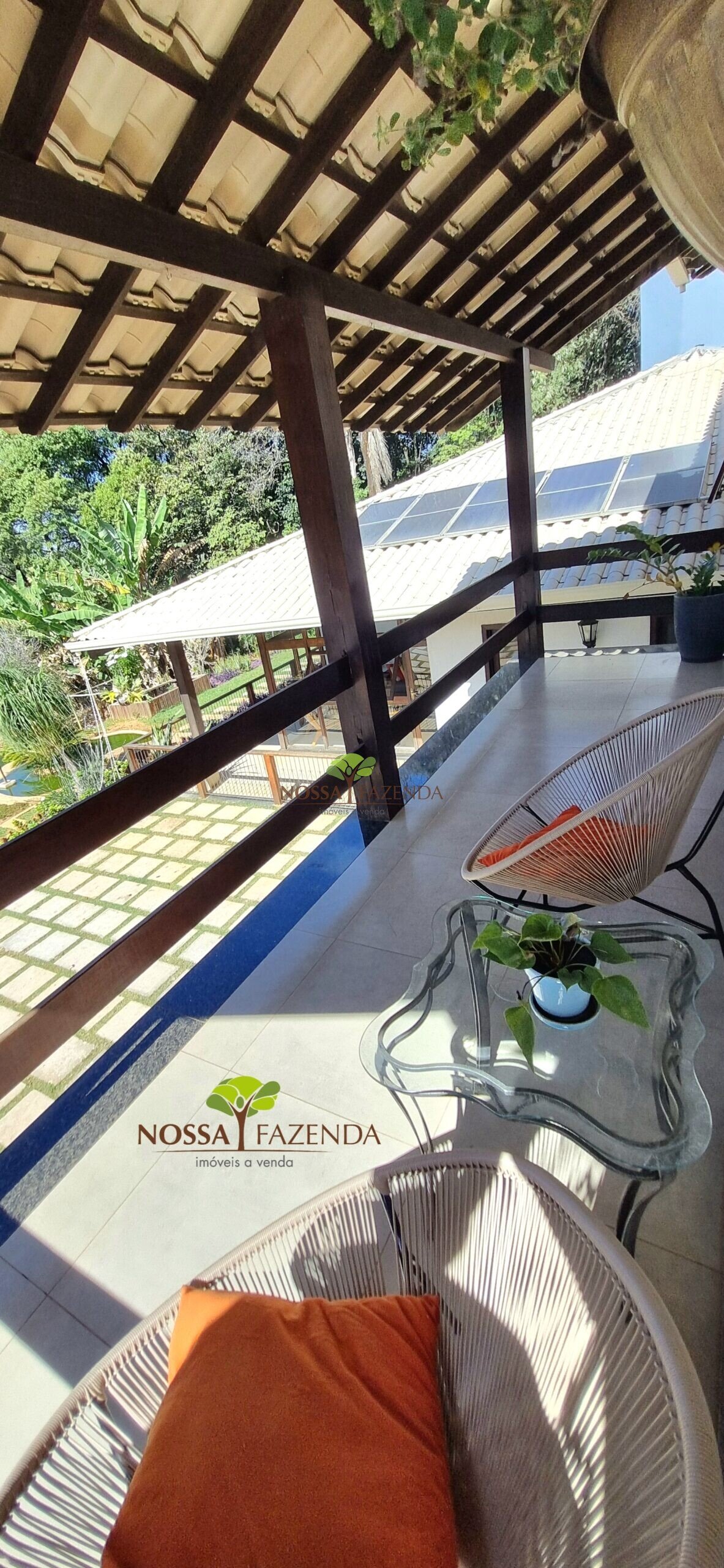 O terreno aqui tem 5.000m2 com uma vista incrível! Casa 2 pavimentos em ótimos padrões de acabamento e decoração; possui 5 quartos (sendo 4 suítes, uma delas com varanda privativa e closet); sala de estar com pé direito duplo, salar de jantar, cozinha estilo americana, ampla área de serviço com DCE, garagem coberta para 2 veículos.