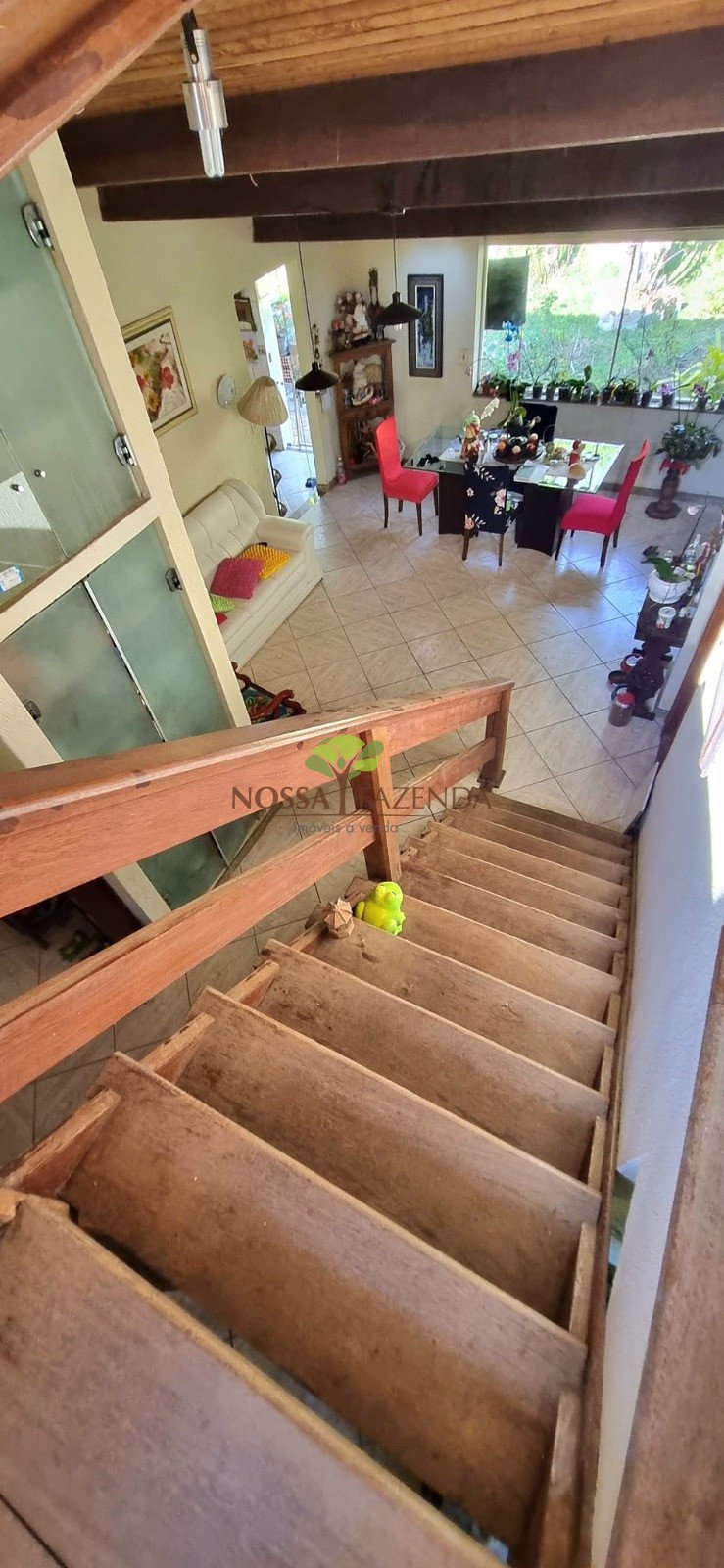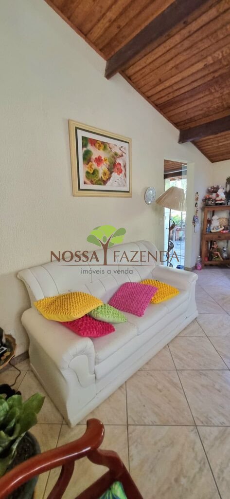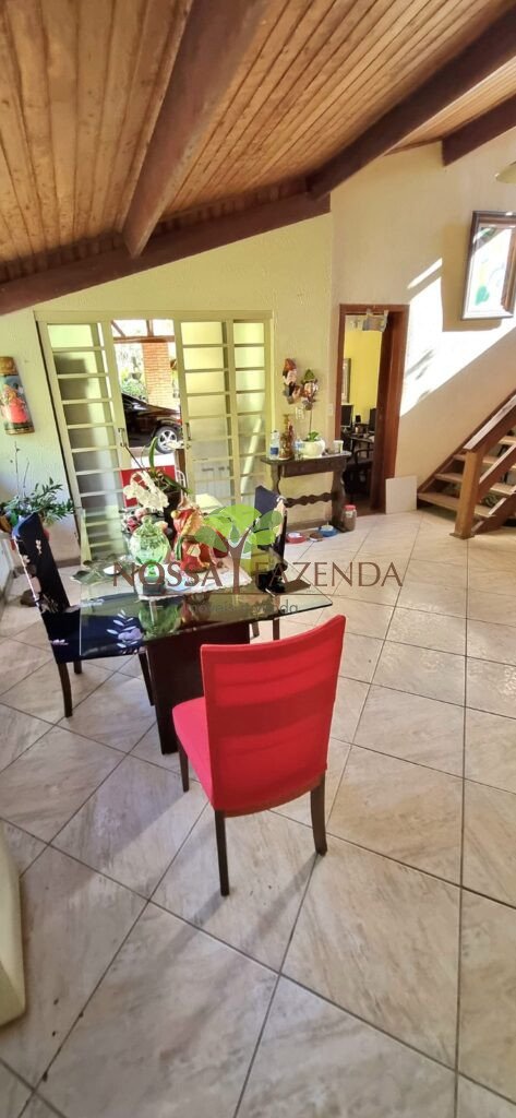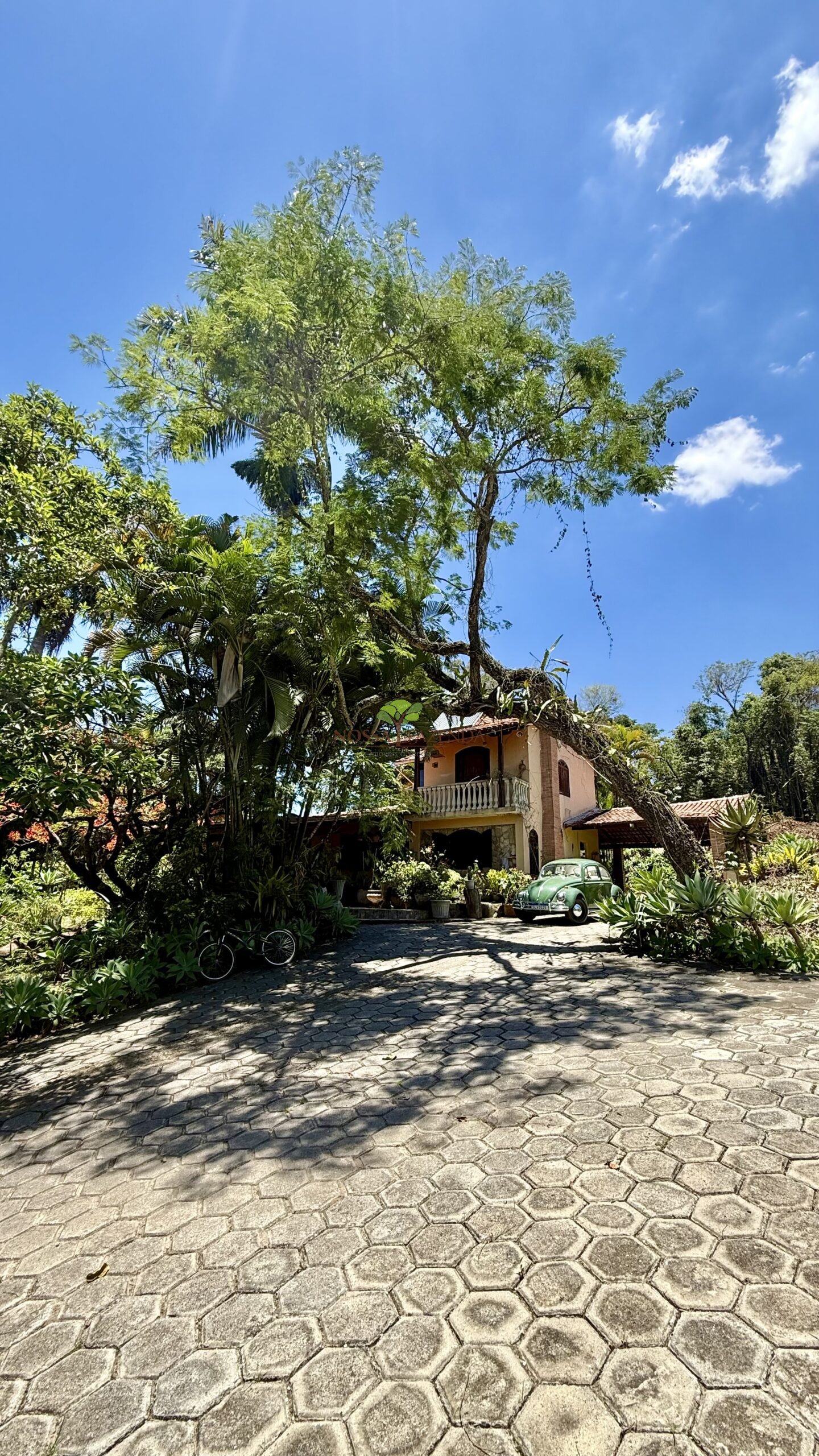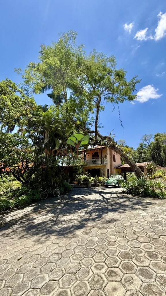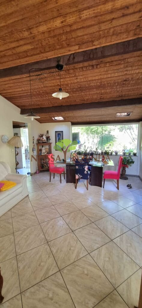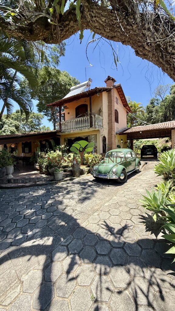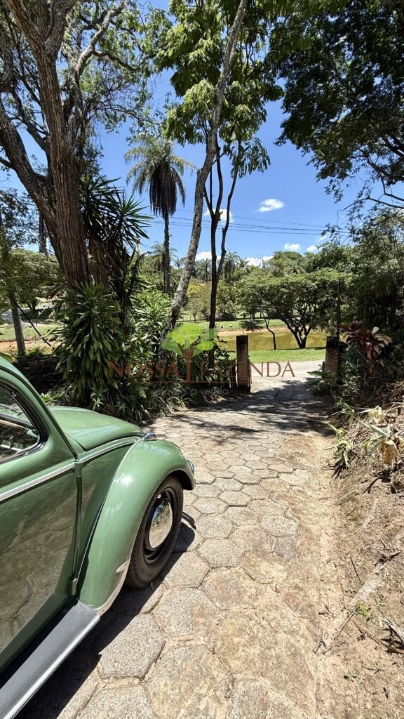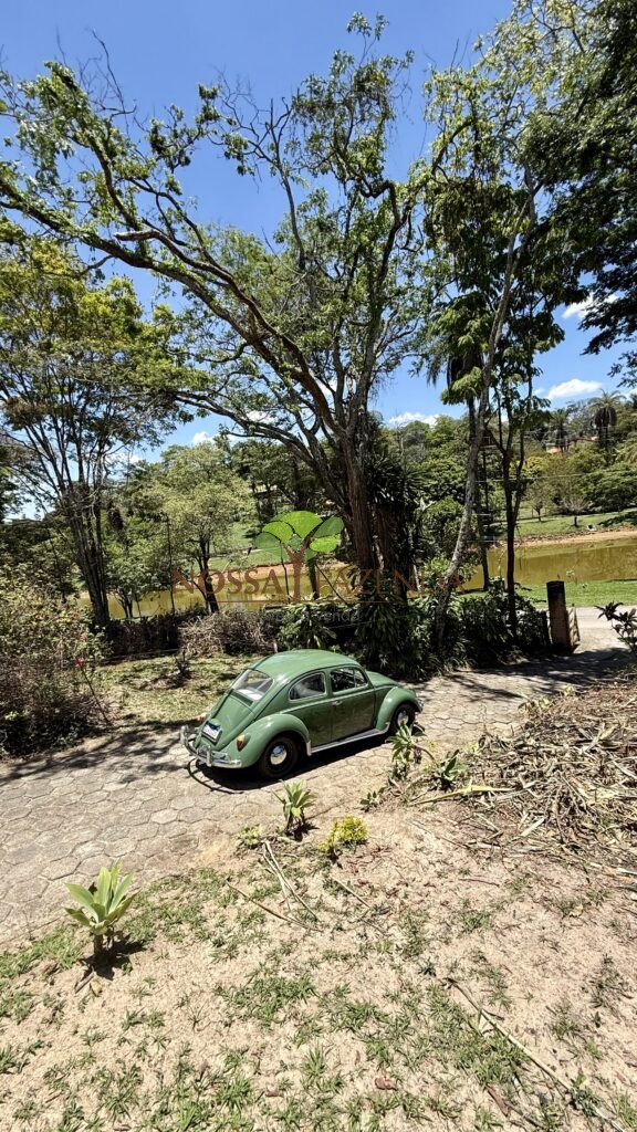 Terreno de 6000 m2 de natureza pura em área nobre, frente para um dos lagos centrais do Condomínio. A casa com varanda, equipada de aquecedor solar tem 2 cozinhas, lavanderia, escritório, sala para 2 ambientes com lareira, 4 quartos sendo 2 suítes e garagem coberta para 2 veículos. No andar superior temos mais uma linda suíte privativa com hidromassagem e varanda com lindíssima vista.