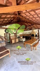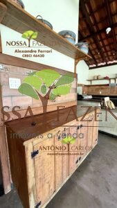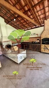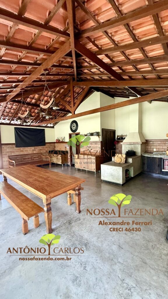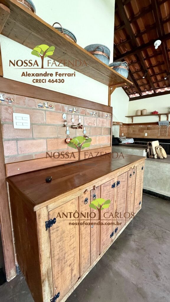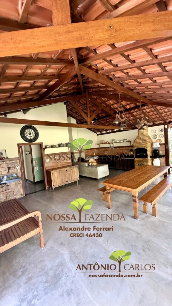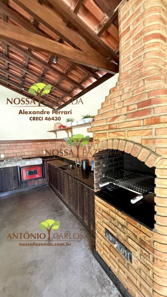 Complexo gourmet com fogão à lenha, mobílias e detalhes personalizados que deixa o ambiente muito acolhedor e confortável.