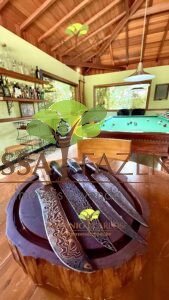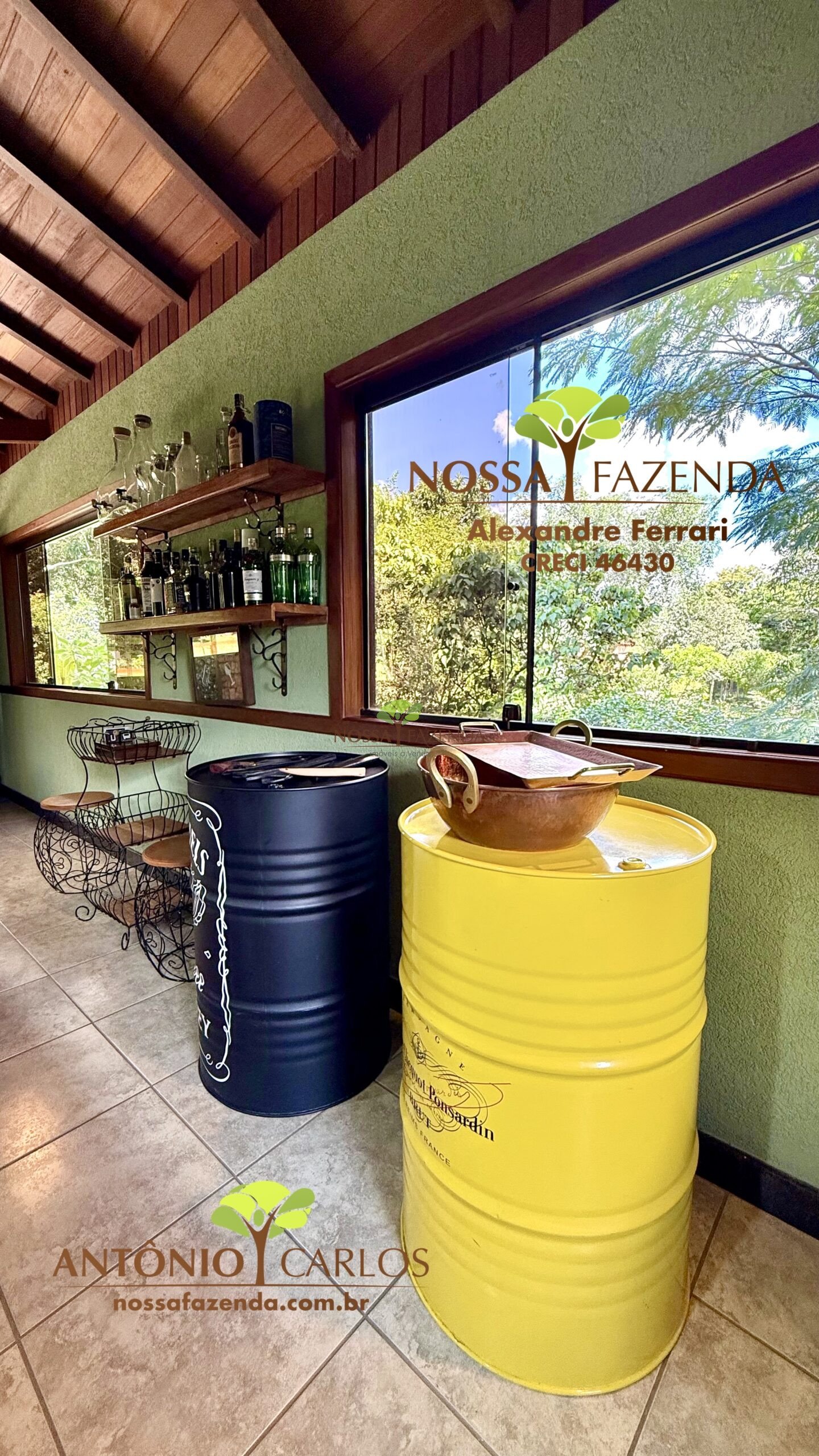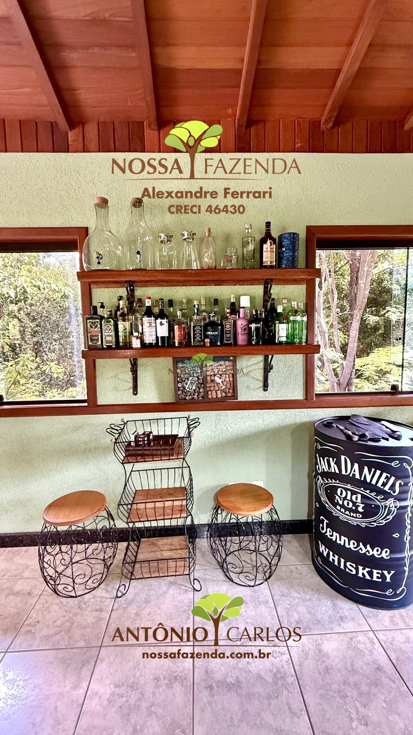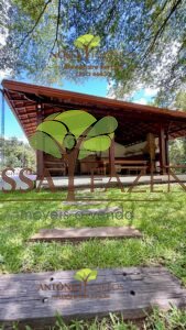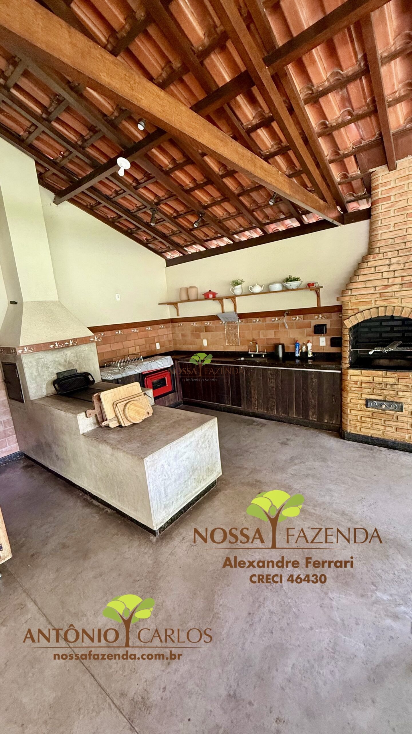 Complexo gourmet com fogão à lenha, mobílias e detalhes personalizados que deixa o ambiente muito acolhedor e confortável.