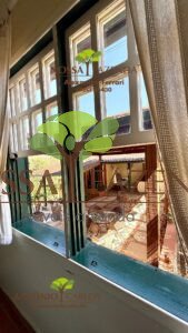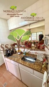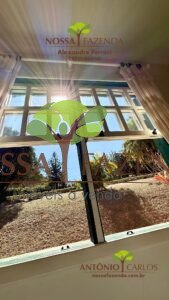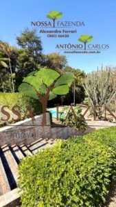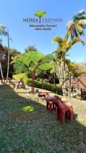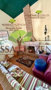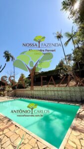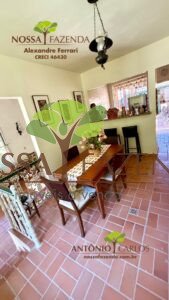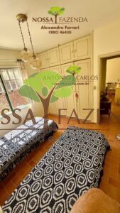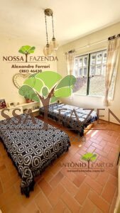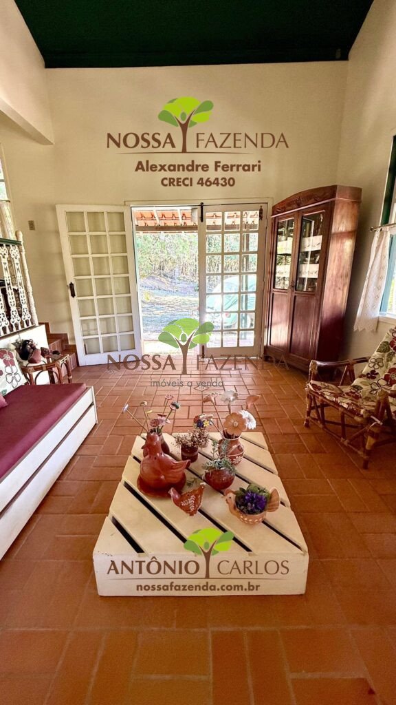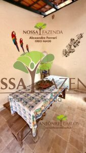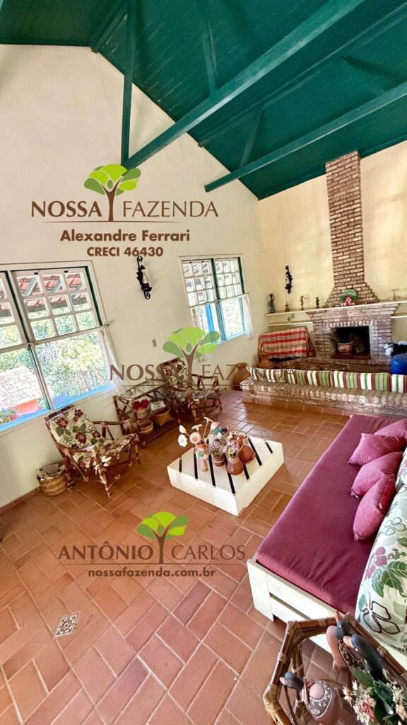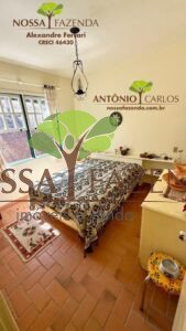 E, ó, do lado de fora piscina pra se “banhá”, tudo cercado por uma natureza que parece pintura de quadro sô! E ainda tem galinheiro, bosque, um córrego correndo lá no fundo que canta procê mimir, jardins que são um show de cores e na varanda uma rede preguiçosa pra deitar com uma belíssima vista!