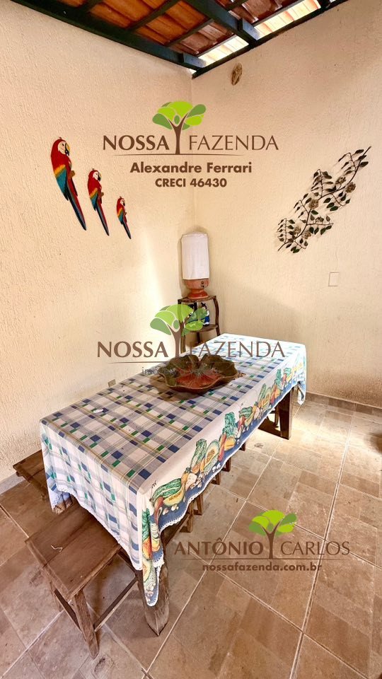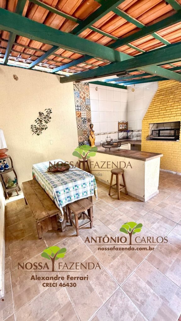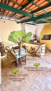 Uma casa “vermeiada” que nem bunda de babuíno! Tem 3 quartos, e olha só, 1 deles é uma suíte, procê se sentir o rei ou rainha com um trono só procê! Tem sala de dois lugar (um pra rir outro pra “chorá”) ocê iscolhe; sala de jantar, cozinha e área da churrasqueira com a melhor rede social já inventada: fogão à lenha!