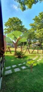 – Pomar com mais de 100 pés de frutíferas e lindo paisagismo com jardins e peças ornamentais como palmeiras imperiais, strelitzias, capim do texas, alpineas, agaveas, moreias, etc;