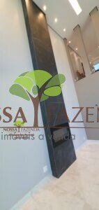 – Sala para dois ambientes com lareira em led e menu touch screen, possui pé direito duplo e sacada com visual imponente.