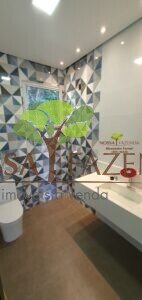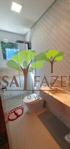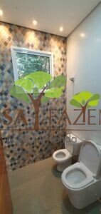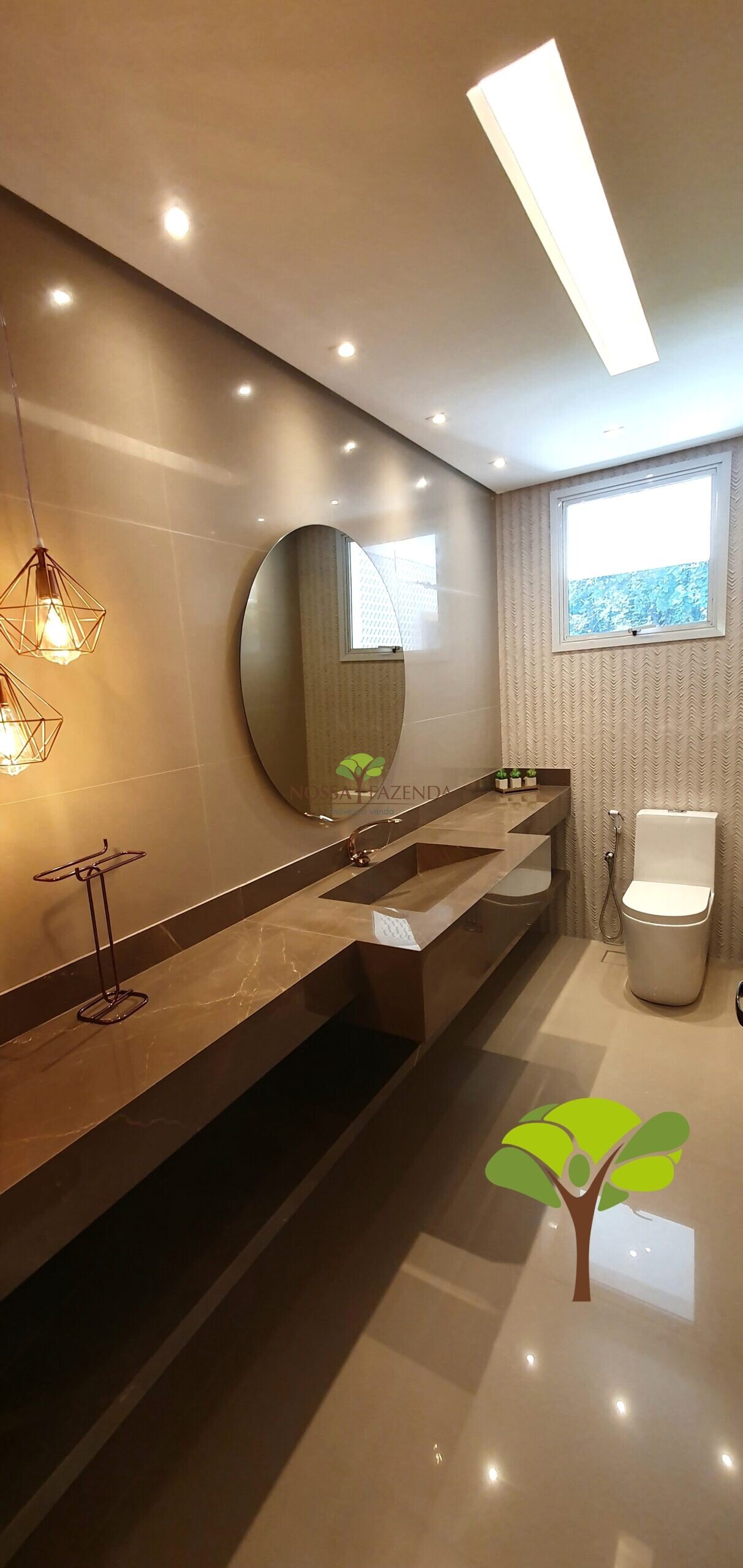 – Lavabo social com nicho, pia esculpida e iluminação personalizada;