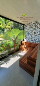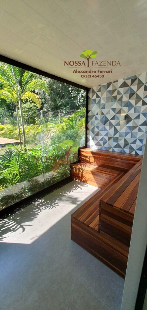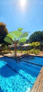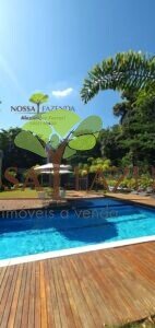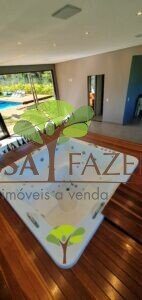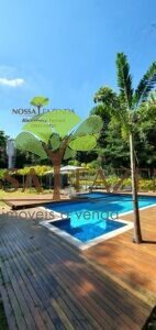 – Piscina coberta com deck de ipê retrátil com acionamento em controle remoto; mais decks em toda sua volta que liga a casa, área gourmet e área de lazer (mais de 280m2 de deck) feita em concreto armado tamanho 8×4 parte funda com 1,5 metros de profundidade e parte rasa/ Prainha 4x4m2 com 40 cm profundidade, piscina tb possui sistema de tratamento da água com ozônio que dispensa o uso de cloro;