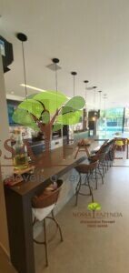 – Área gourmet com churrasqueira e fogão a lenha, bancadas em quartzo Marron, banheiros masculino e feminino (com assento infantil), área de jogos e sistema de som setorizado;